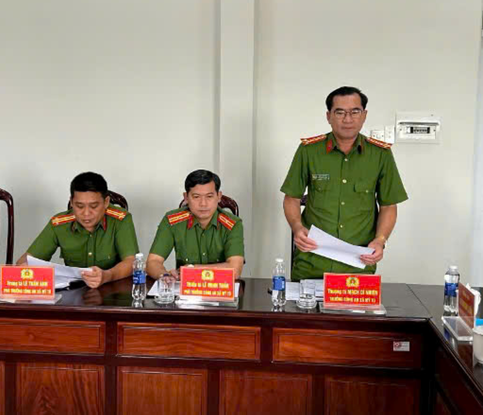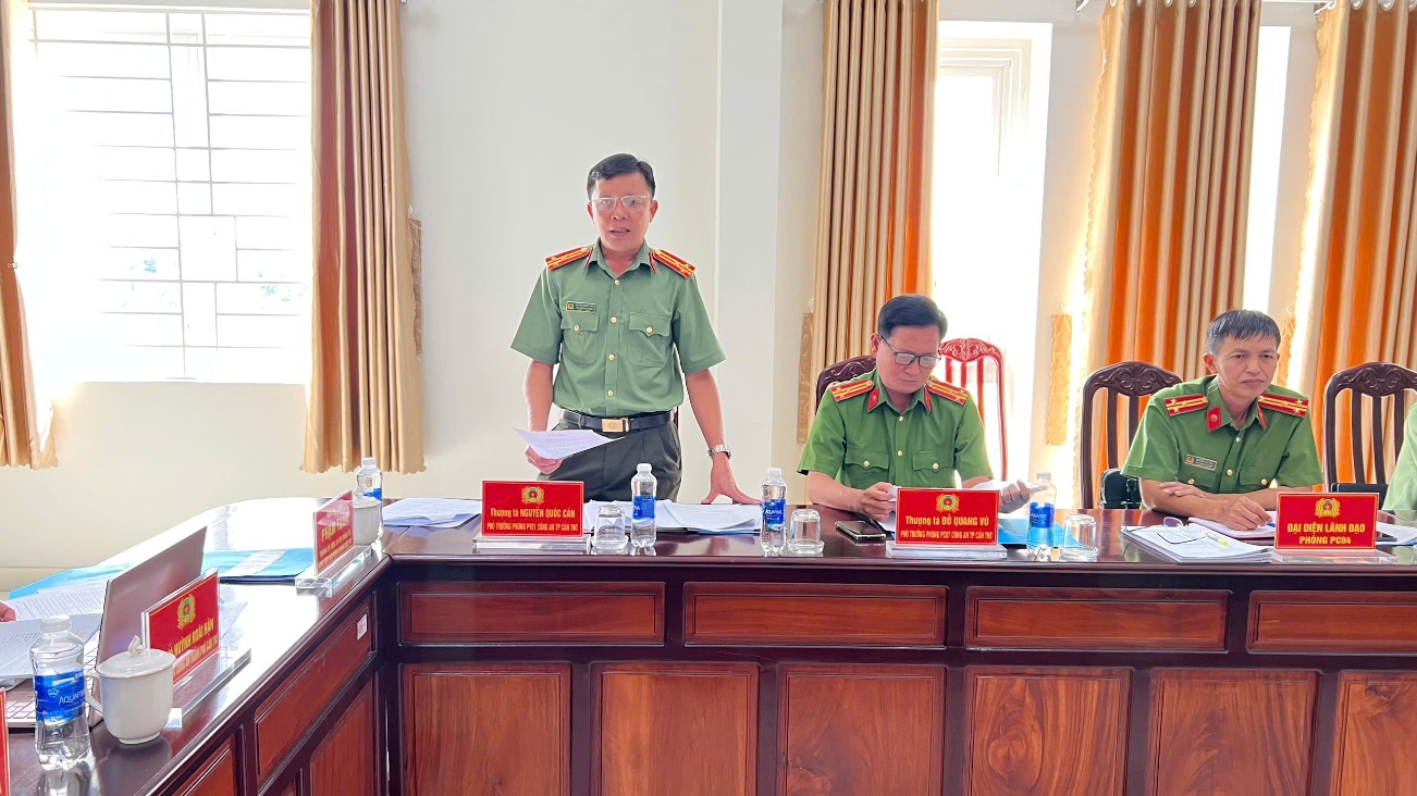 Đồng chí Đại tá Huỳnh Hoài Hận, Ủy viên Ban Thường vụ Đảng ủy, Phó Giám đốc Công an thành phố tuyên bố lý do và phát biểu chỉ đạo tại buổi làm việc