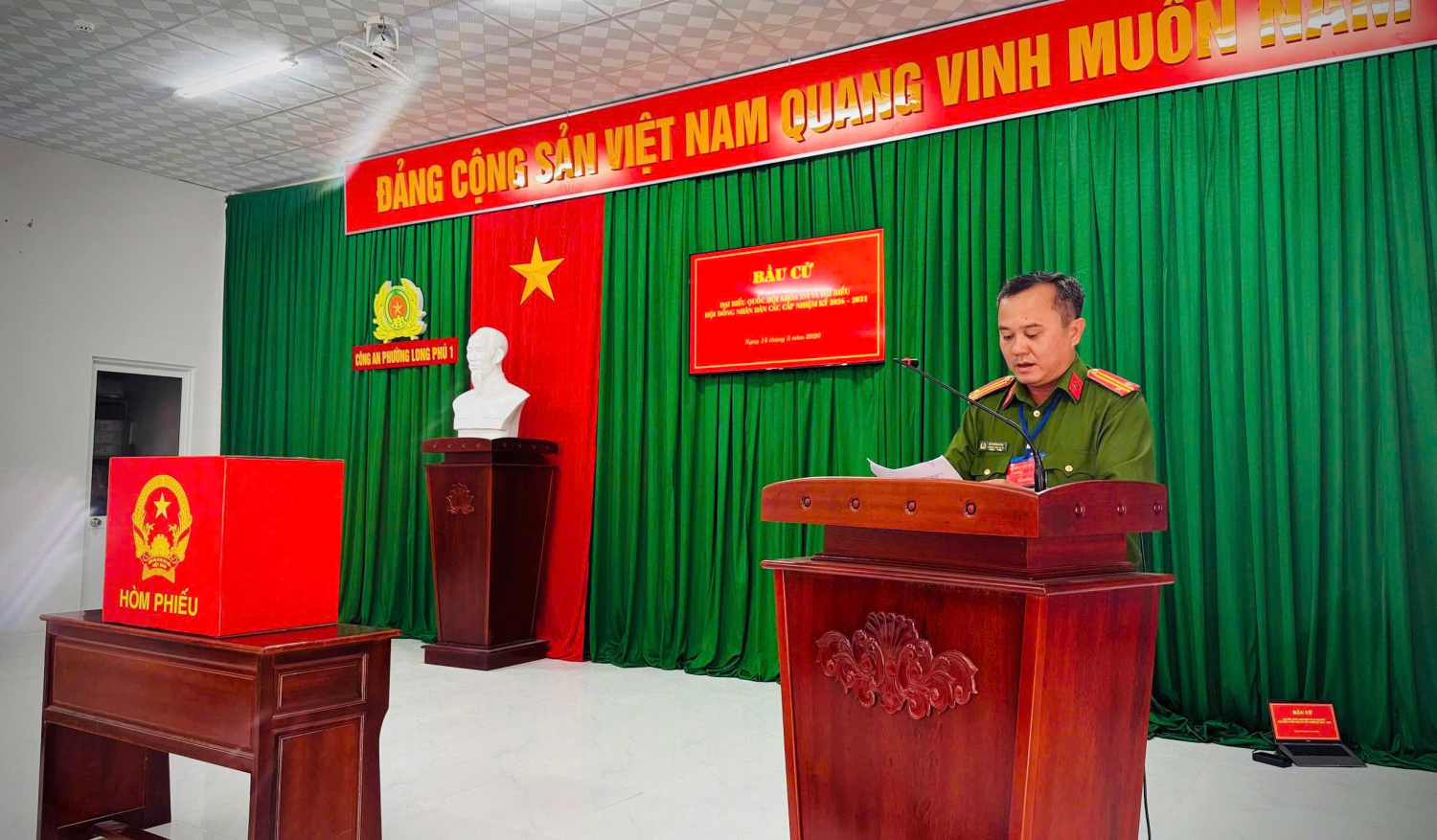 Ngày 14/3/2026, 93 cử tri là lãnh đạo, cán bộ, chiến sĩ Công an và Lực lượng bảo vệ an ninh, trật tự cơ sở phường Long Phú 1 đã tham gia bỏ phiếu bầu cử sớm tại Tổ bầu cử số 21.