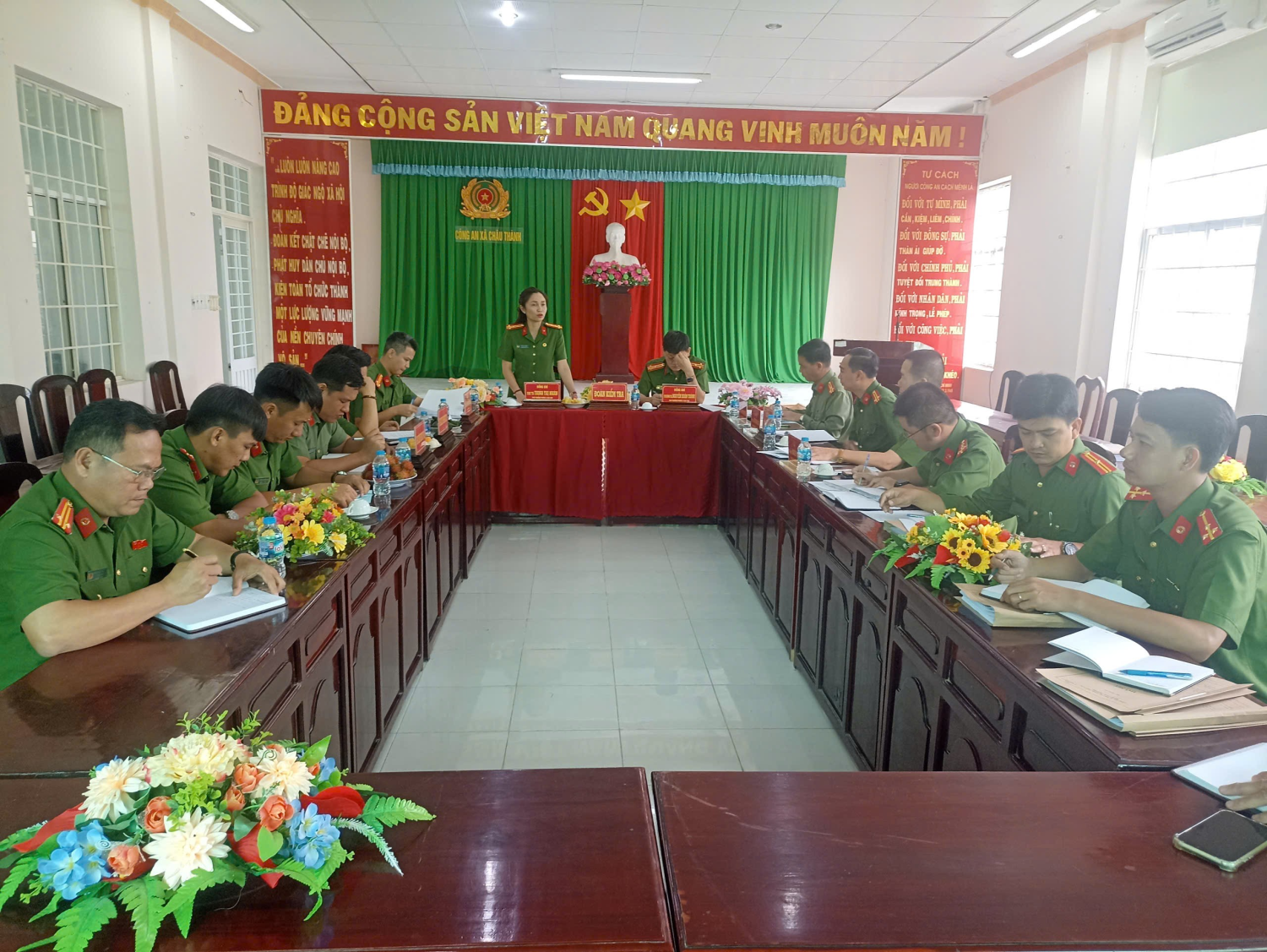 Tại xã Châu Thành, Công an xãđã báo cáo kết quả các mặt công tác nghiệp vụ cơ bản và việc tổ chức thực hiện một số chuyên đề trọng tâm về phòng, chống tội phạm, vi phạm pháp luật trong lĩnh vực môi trường, tài nguyên, an toàn thực phẩm. Báo cáo cũng nêu rõ những thuận lợi, khó khăn, vướng mắc trong quá trình tổ chức thực hiện, đặc biệt là trong công tác chỉ đạo, điều hành, tiếp nhận nhiệm vụ, phân công cán bộ và bảo đảm các điều kiện về cơ sở vật chất, kinh phí, trang thiết bị. Đồng chí Đại tá Trịnh Thị Nhàn, Phó Trưởng Phòng 4, Cục Cảnh sát phòng, chống tội phạm về môi trường, Bộ Công an đánh giá cao nỗ lực, tinh thần chủ động của Công an xã Châu Thành trong việc ổn định tổ chức, duy trì hiệu quả các mặt công tác thường xuyên; đồng thời chỉ đạo một số nhiệm vụ trọng tâm như: tăng cường công tác nghiệp vụ cơ bản; quản lý chặt địa bàn, đối tượng, cơ quan, doanh nghiệp có nguy cơ gây ô nhiễm môi trường… nhằm nâng cao hiệu quả công tác, góp phần bảo đảm an ninh, trật tự ở cơ sở.