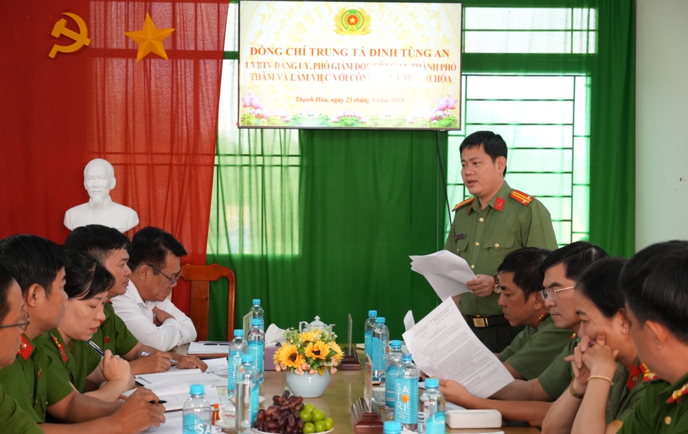 Kết luận buổi làm việc tại Công an xã Thạnh Hòa, đồng chí Trung tá Đinh Tùng An, Ủy viên Ban Thường vụ Đảng ủy, Phó Giám đốc Công an thành phố ghi nhận, đánh giá cao kết quả công tác của Công an xã Thạnh Hòa trong thời gian qua, nhất là trong điều kiện thực hiện mô hình chính quyền 2 cấp. Đồng chí yêu cầu Công an xã tiếp tục phát huy tinh thần trách nhiệm, chủ động nắm chắc tình hình, quản lý địa bàn, không để bị động, bất ngờ; tăng cường công tác tư tưởng cho cán bộ, chiến sĩ; giữ vững đoàn kết nội bộ, kỷ luật, kỷ cương, điều lệnh, tác phong chuẩn mực. Đồng chí cũng giao các phòng nghiệp vụ tiếp tục phối hợp, hỗ trợ Công an xã về nghiệp vụ và cơ sở vật chất, trang thiết bị thiết yếu, nhằm giúp lực lượng ngày càng trưởng thành, vững mạnh, hoàn thành tốt mọi nhiệm vụ được giao./.