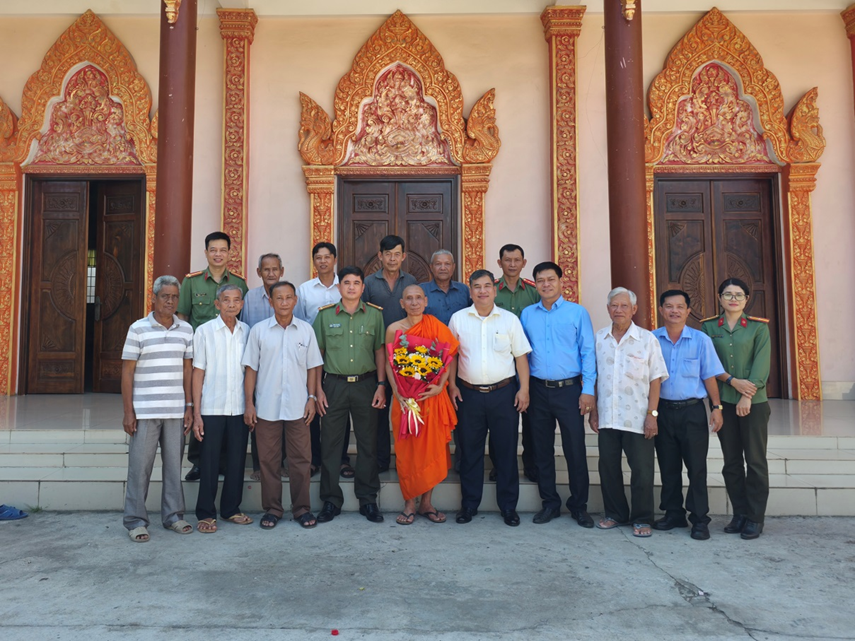 Đoàn công tác cũng thông tin khái quát tình hình an ninh, trật tự trên địa bàn trong thời gian qua; đồng thời bày tỏ mong muốn Hoà thượng Dương An tiếp tục phát huy vai trò, uy tín của mình, phối hợp cùng Ban Quản trị chùa Settodor và đồng bào Phật giáo Nam tông Khmer tích cực hưởng ứng phong trào thi đua yêu nước, chung tay xây dựng địa phương ngày càng phát triển, văn minh, an toàn.