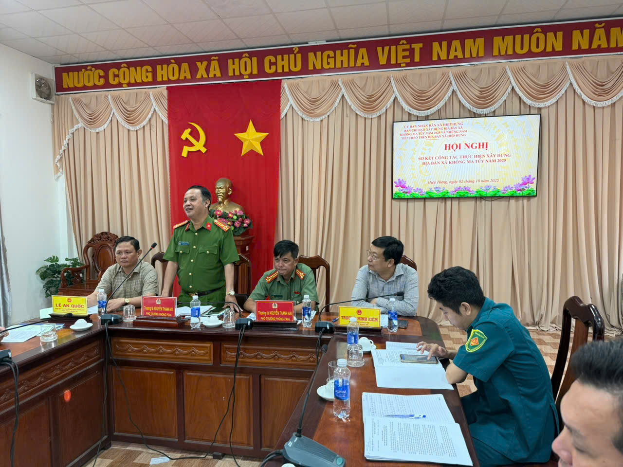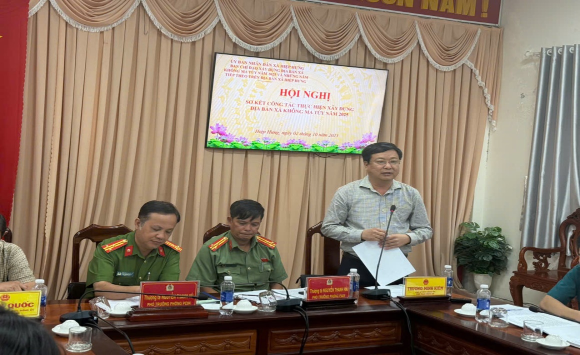 Phát biểu chỉ đạo tại Hội nghị, Thượng tá Nguyễn Thanh Vũ, Phó Trưởng Phòng Cảnh sát điều tra tội phạm về ma túy Công an thành phố biểu dương Công an xã Hiệp Hưng đã chủ động, tiên phong trong công tác tham mưu, tổ chức triển khai và ra quân thực hiện kế hoạch xây dựng địa bàn xã không ma túy. Đây cũng là đơn vị đầu tiên trong Công an thành phố tổ chức Hội nghị sơ kết 01 tháng thực hiện Kế hoạch của Ủy ban nhân dân thành phố Cần Thơ về việc xây dựng địa bàn xã không ma túy năm 2025 và những năm tiếp theo. Bên cạnh đó, đồng chí yêu cầu Công an xã tiếp tục tập trung cao điểm thực hiện các nhiệm vụ trọng tâm trong 02 tháng cuối năm, phấn đấu được công nhận là xã không ma túy năm 2025.