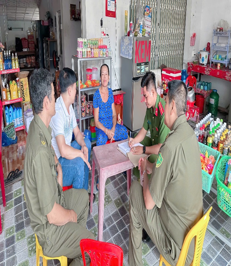 Ảnh Công an xã cùng lực lượng an ninh, trật tự cơ sở tiếp xúc lắng nghe tâm tư và mong muốn của người dân trên địa bàn.