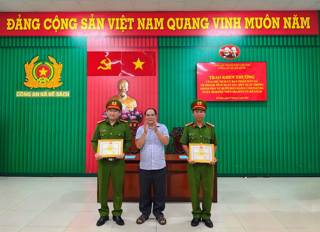 Trước đó, Chủ tịch Ủy ban nhân dân xã đã quyết định khen thưởng cho 05 cá nhân có thành tích xuất sắc trong thực hiện cao điểm tấn công, trấn áp các loại tội phạm; bảo đảm an ninh, trật tự các ngày lễ lớn và Đại hội Đảng bộ các cấp trên địa bàn. Nhằm kịp thời động viên tinh thần lực lượng trong đấu tranh phòng, chống tội phạm, Ủy ban nhân dân xã cũng khen thưởng đột xuất cho 02 cá nhân có thành tích mưu trí, dũng cảm trong phát hiện, bắt giữ vụ buôn bán hàng cấm là thuốc lá điếu nhập lậu xảy ra ngày 30/10/2025 tại ấp An Ninh 2, xã Kế Sách.