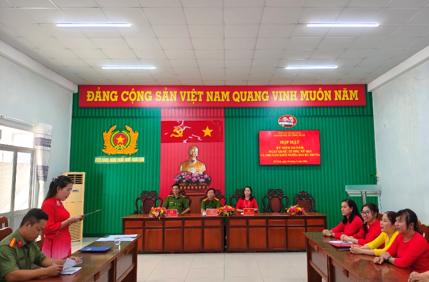 Tại buổi họp mặt, các đại biểu đã cùng nhau ôn lại truyền thống vẻ vang của Khởi nghĩa Hai Bà Trưng – biểu tượng cho tinh thần bất khuất, ý chí quật cường của phụ nữ Việt Nam trong lịch sử dựng nước và giữ nước; đồng thời khẳng định ý nghĩa của Ngày Quốc tế Phụ nữ 08/3, ngày tôn vinh những đóng góp to lớn của phụ nữ trong sự nghiệp xây dựng, phát triển và bảo vệ Tổ quốc. Hiện nay, Công an xã Kế Sách có 08 hội viên phụ nữ đang đảm nhiệm nhiều vị trí công tác khác nhau. Dù ở bất kỳ lĩnh vực nào, các đồng chí nữ luôn nêu cao tinh thần trách nhiệm, chủ động khắc phục khó khăn, tận tụy với công việc, nỗ lực hoàn thành tốt nhiệm vụ được giao. Đối với nữ thành viên lực lượng tham gia bảo vệ an ninh, trật tự ở cơ sở, các đồng chí đã phát huy vai trò tích cực, trở thành “cánh tay nối dài” của lực lượng Công an xã trong công tác giữ gìn an ninh, trật tự tại địa phương. Trong quá trình thực hiện nhiệm vụ bảo đảm an ninh, trật tự trên địa bàn, nữ cán bộ, chiến sĩ Công an xã Kế Sách đã phát huy tốt vai trò trên nhiều lĩnh vực như: quản lý địa bàn, nắm tình hình, điều tra cơ bản, tuyên truyền pháp luật và vận động Nhân dân tham gia phong trào Toàn dân bảo vệ an ninh Tổ quốc. Với sự tận tâm, gần gũi và tinh tế trong tiếp xúc với Nhân dân, các chị em đã góp phần xây dựng hình ảnh đẹp của người chiến sĩ Công an cơ sở. Đồng thời, kịp thời phát hiện, tham mưu giải quyết nhiều vụ việc phát sinh ngay từ cơ sở, góp phần giữ vững ổn định tình hình an ninh, trật tự trên địa bàn.