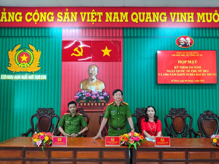 Nhân kỷ niệm 1986 năm Khởi nghĩa Hai Bà Trưng và 116 năm Ngày Quốc tế Phụ nữ 08/3, ngày 06/3/2026, Công an xã Kế Sách tổ chức buổi họp mặt tri ân hội viên phụ nữ – những “bông hoa” của lực lượng Công an cơ sở, nhằm tôn vinh, ghi nhận những đóng góp tích cực của nữ cán bộ, chiến sĩ và lực lượng nữ tham gia bảo vệ an ninh, trật tự ở cơ sở trong công tác giữ gìn bình yên địa bàn.