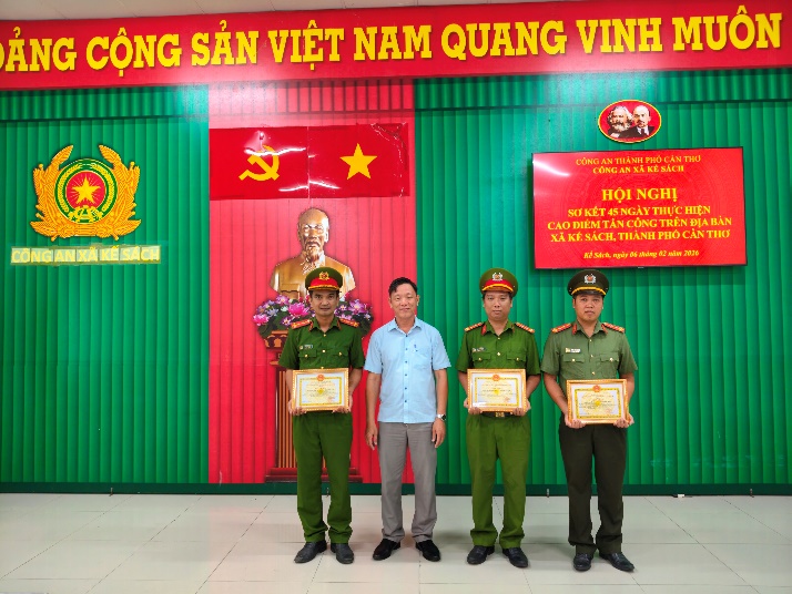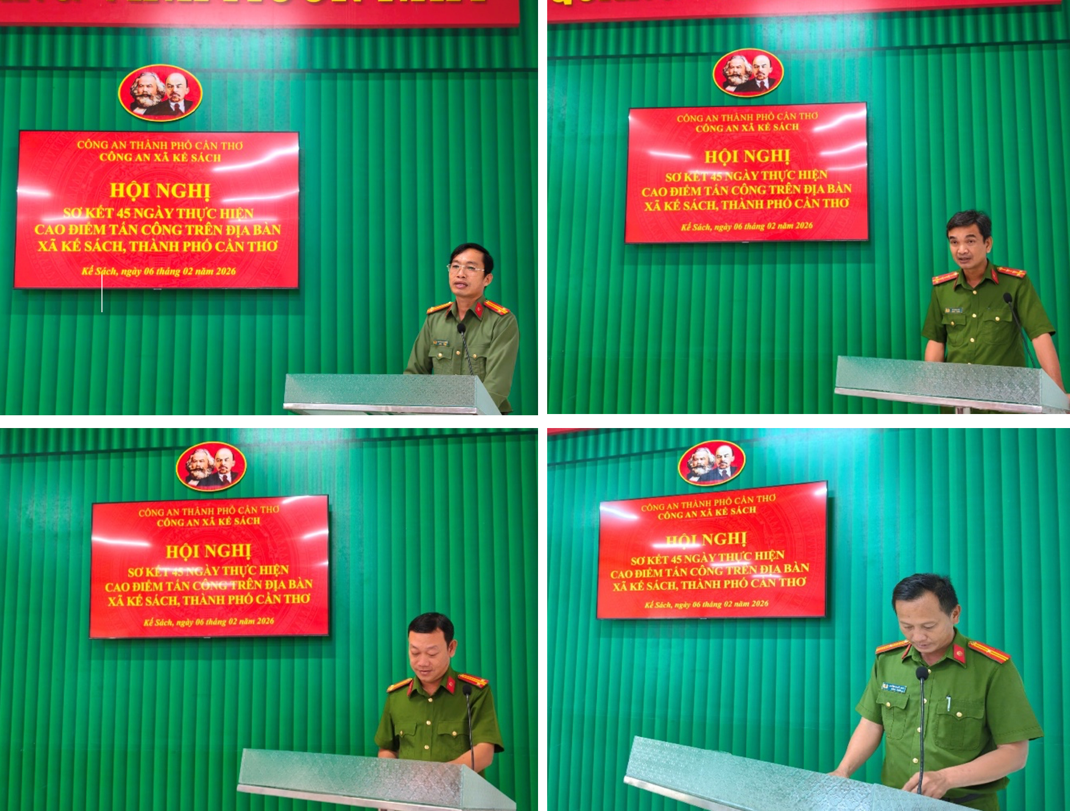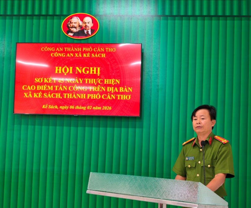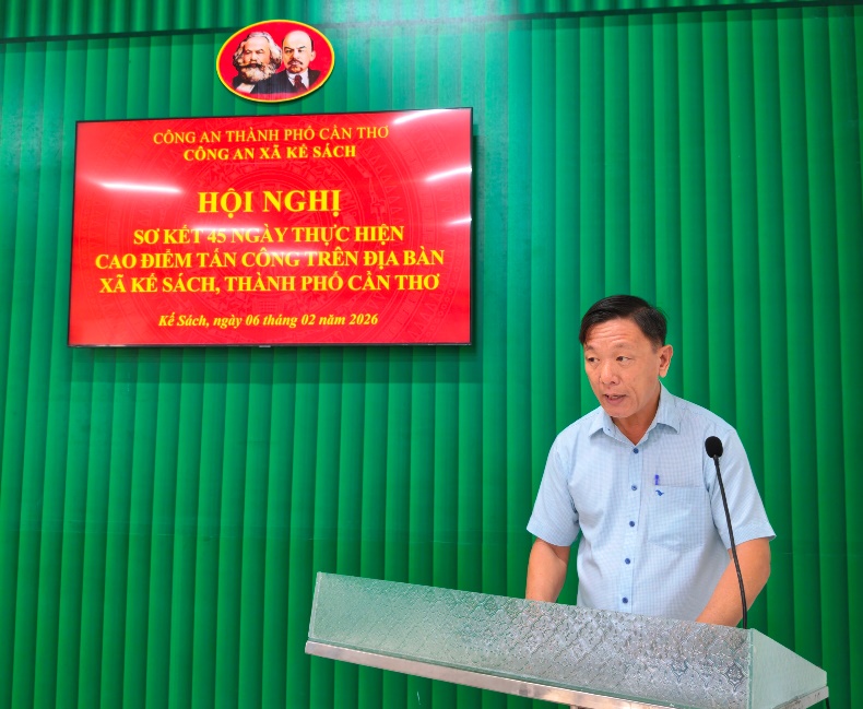 Thực hiện chỉ đạo của Công an thành phố về mở Cao điểm tấn công, trấn áp tội phạm, bảo đảm an ninh, trật tự bảo vệ Đại hội đại biểu toàn quốc lần thứ XIV của Đảng, bầu cử đại biểu Quốc hội khóa XVI, Hội đồng nhân dân các cấp nhiệm kỳ 2026 - 2031, Tết Nguyên đán Bính Ngọ năm 2026 và các sự kiện lớn của đất nước, ngày 06/02/2026, Công an xã Kế Sách tổ chức Hội nghị sơ kết 45 ngày thực hiện Cao điểm trên địa bàn xã.
