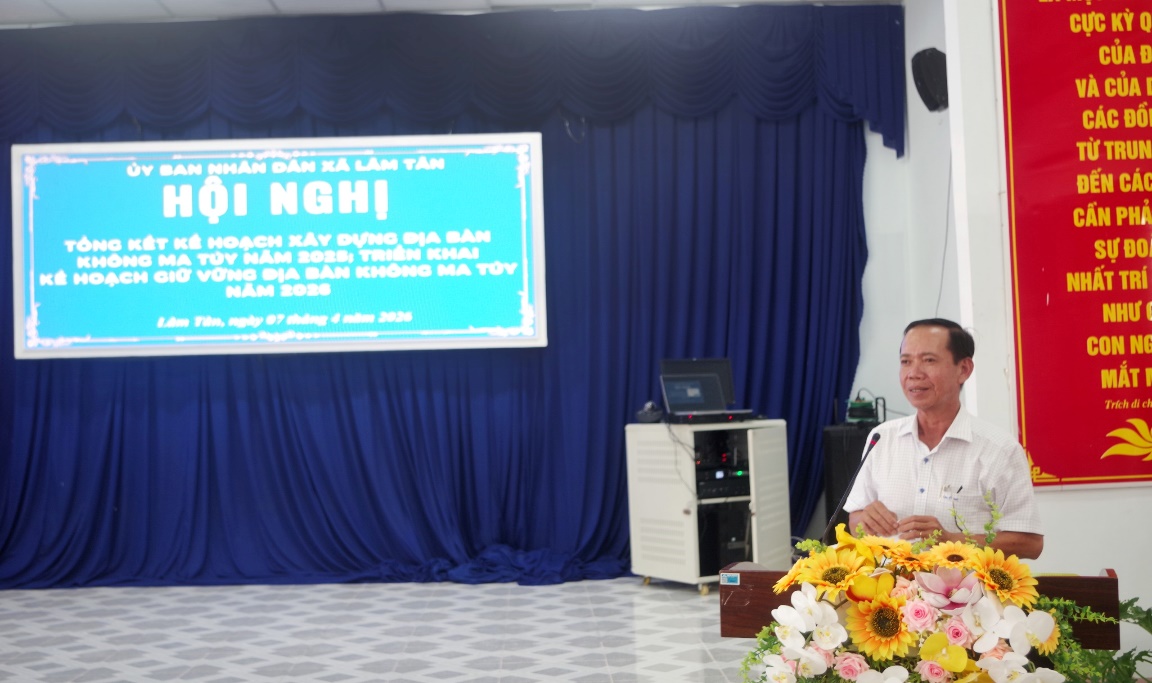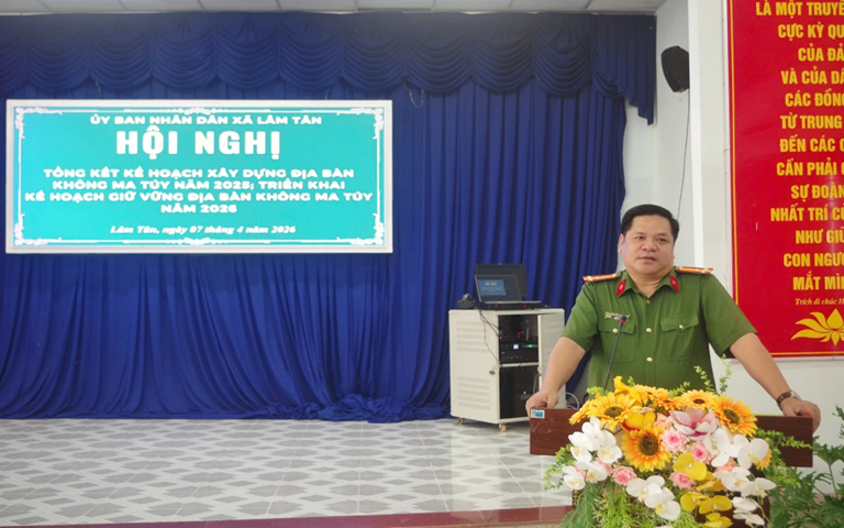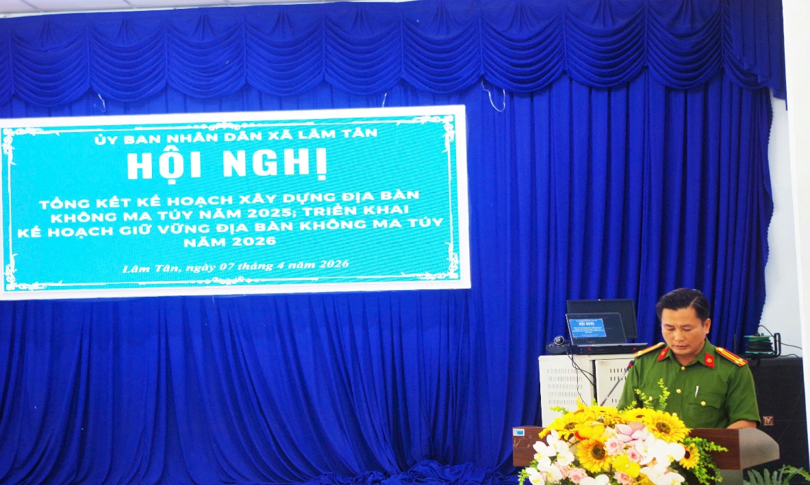 Chiều ngày 07/4/2026, Công an xã đã tham mưu Ủy ban nhân dân xã Lâm Tân tổ chức Hội nghị tổng kết thực hiện kế hoạch xây dựng địa bàn không ma tuý năm 2025 và triển khai kế hoạch giữ vững địa bàn không ma tuý năm 2026. Tham dự và chỉ đạo Hội nghị có đồng chí Thượng tá Nguyễn Thanh Long, Trưởng phòng Cảnh sát điều tra tội phạm về ma tuý, Công an thành phố, thành viên Ban Chỉ đạo xây dựng xã/phường không ma tuý; đồng chí Nguyễn Văn Sô, Phó Bí thư Đảng uỷ, Chủ tịch Ủy ban nhân dân xã Lâm Tân.