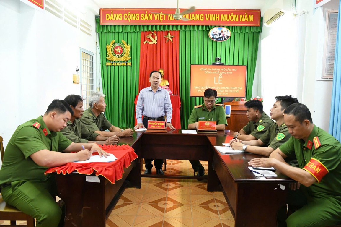 Sáng 24/4/2026, tại xã Long Phú, thành phố Cần Thơ, Công an xã Long Phú tổ chức Hội nghị trao Quyết định cho các cá nhân tham gia lực lượng bảo vệ an ninh, trật tự ở cơ sở. Dự Hội nghị có đồng chí Hồ Quốc Hùng, Đảng ủy viên, Phó Chủ tịch Ủy ban nhân dân xã; lãnh đạo Công an xã và các cá nhân được tuyển chọn.
