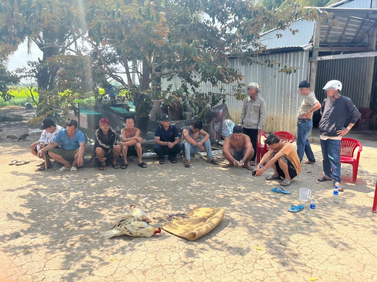 Tại hiện trường, lực lượng Công an tạm giữ 02 con gà, 04 cựa kim loại, 05 điện thoại di động đã qua sử dụng và số tiền 7.859.000 đồng cùng một số tang vật có liên quan.
