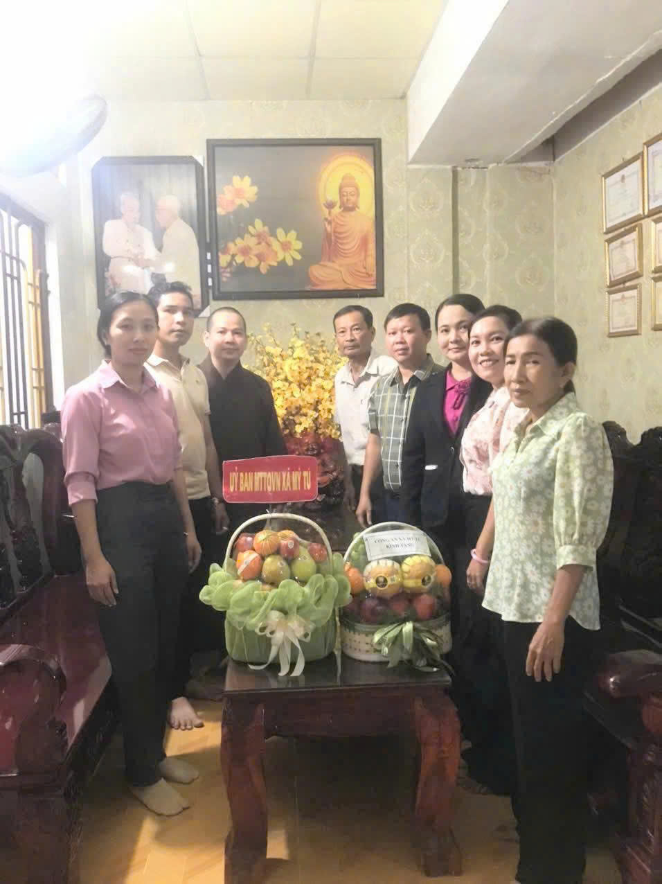 Công an xã Mỹ Tú phối hợp với Ủy ban Mặt trận Tổ quốc Việt Nam xã đến thăm hỏi Chùa Phước Long.