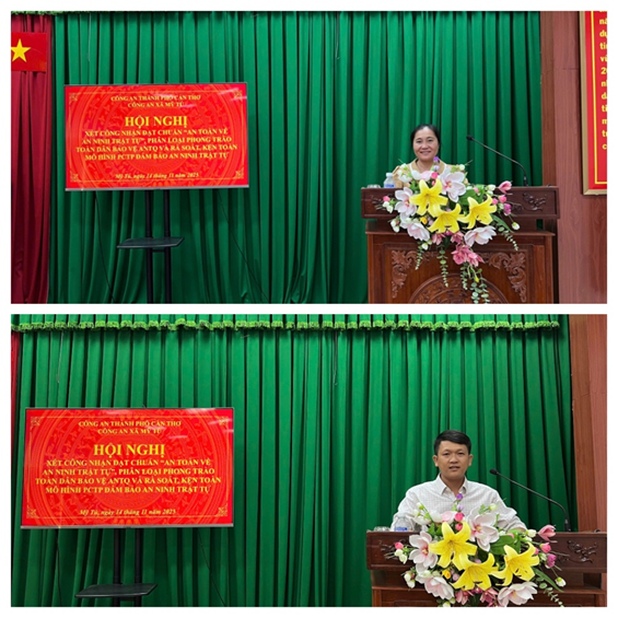 Thời gian qua, Công an xã Mỹ Tú đã triển khai nghiêm túc các nội dung, kế hoạch phong trào Toàn dân bảo vệ an ninh Tổ quốc và xây dựng khu dân cư, cơ quan, doanh nghiệp, cơ sở giáo dục đạt tiêu chuẩn “An toàn về an ninh, trật tự”. Các hoạt động nhận được sự hưởng ứng tích cực từ các khu vực dân cư và đơn vị trên địa bàn. Dựa trên hồ sơ và kết quả chấm điểm theo quy định, Hội nghị đã xem xét, đánh giá và thống nhất công nhận 29 đơn vị đạt tiêu chuẩn “An toàn về an ninh, trật tự”.