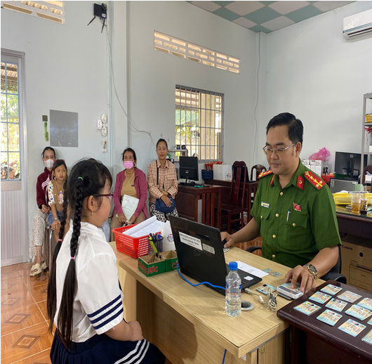 Với tinh thần trách nhiệm cao, tác phong chính quy, thái độ tận tụy, lực lượng Công an cơ sở đã tạo điều kiện thuận lợi nhất để người dân tiếp cận và hoàn thiện hồ sơ theo quy định. Quá trình triển khai được thực hiện nghiêm túc, đúng quy trình, bảo đảm nhanh chóng, chính xác. Cán bộ trực tiếp hướng dẫn chi tiết, hỗ trợ người dân, phụ huynh và các em nhỏ trong từng khâu thực hiện, qua đó góp phần nâng cao hiệu quả cải cách thủ tục hành chính, rút ngắn thời gian giải quyết, giảm thiểu sai sót phát sinh.