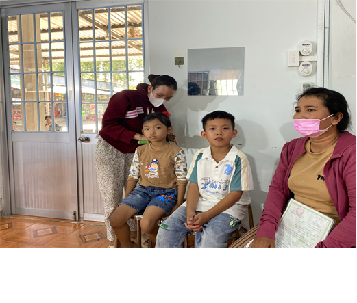 Hình ảnh các bé và phụ huynh tại Tổ Cảnh sát khu vực thực hiện đăng ký định danh điện tử mức 2
