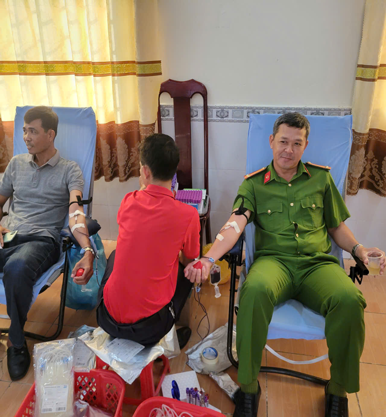 Không chỉ giữ gìn an ninh, trật tự, cán bộ Công an xã Tài Văn còn sẵn sàng sẻ chia dòng máu nóng để cứu giúp những bệnh nhân đang cần giúp đỡ. Hình ảnh các đồng chí trong sắc phục xanh tình nguyện hiến máu là minh chứng rõ nét cho tinh thần trách nhiệm và sự gắn bó mật thiết giữa Công an và Nhân dân.