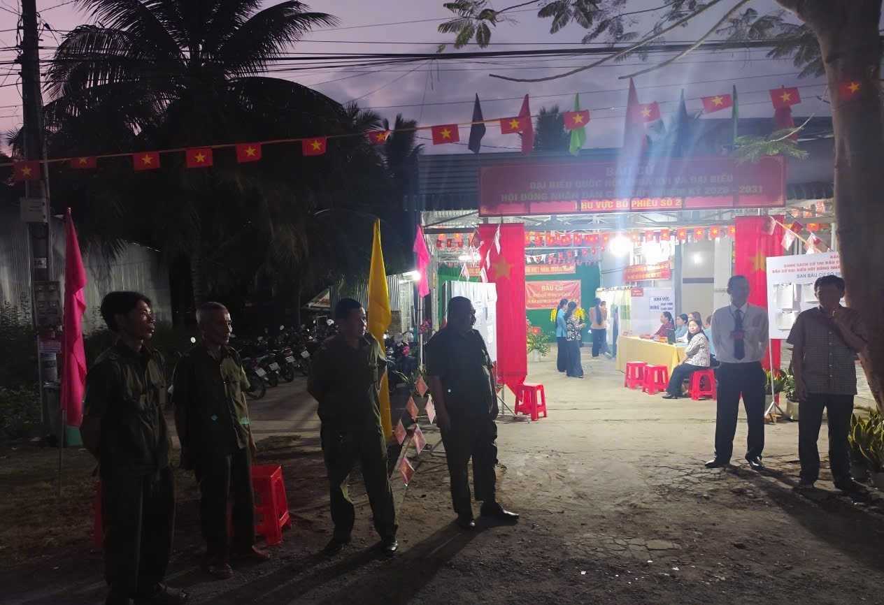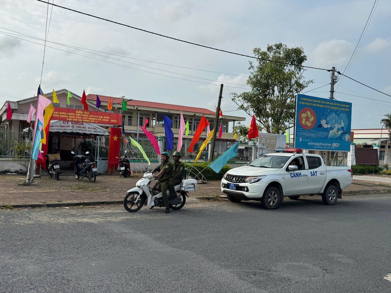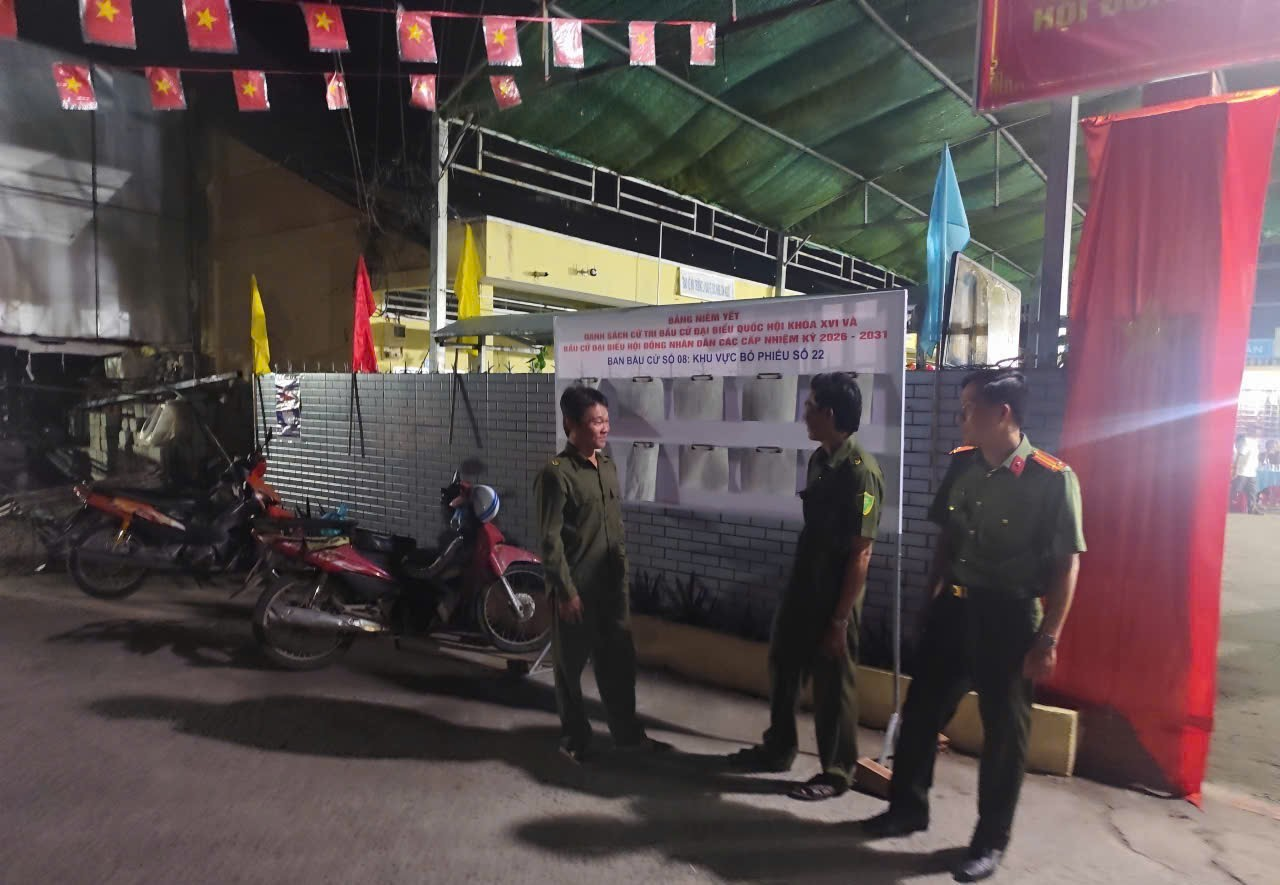 Cán bộ chiến sĩ và lực lượng an ninh trật tự cơ sở tuần tra, bảo vệ 22/24 tại các tổ bầu cử