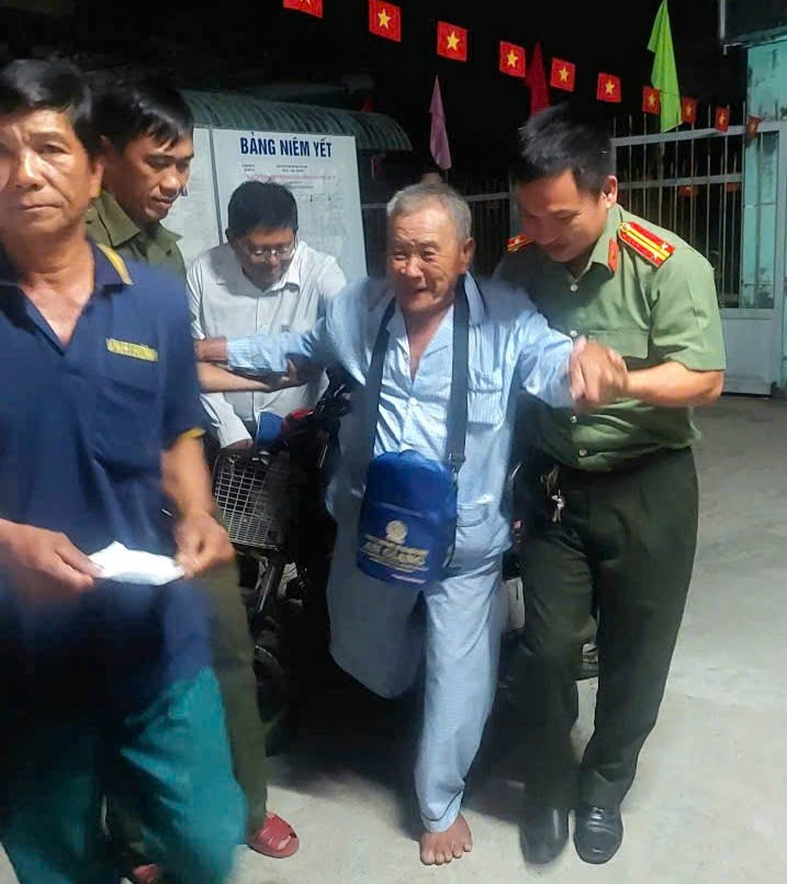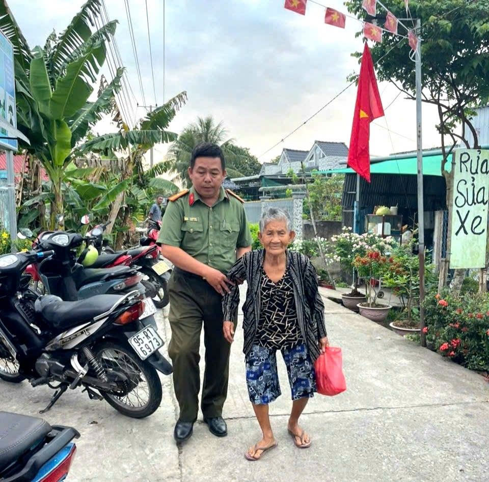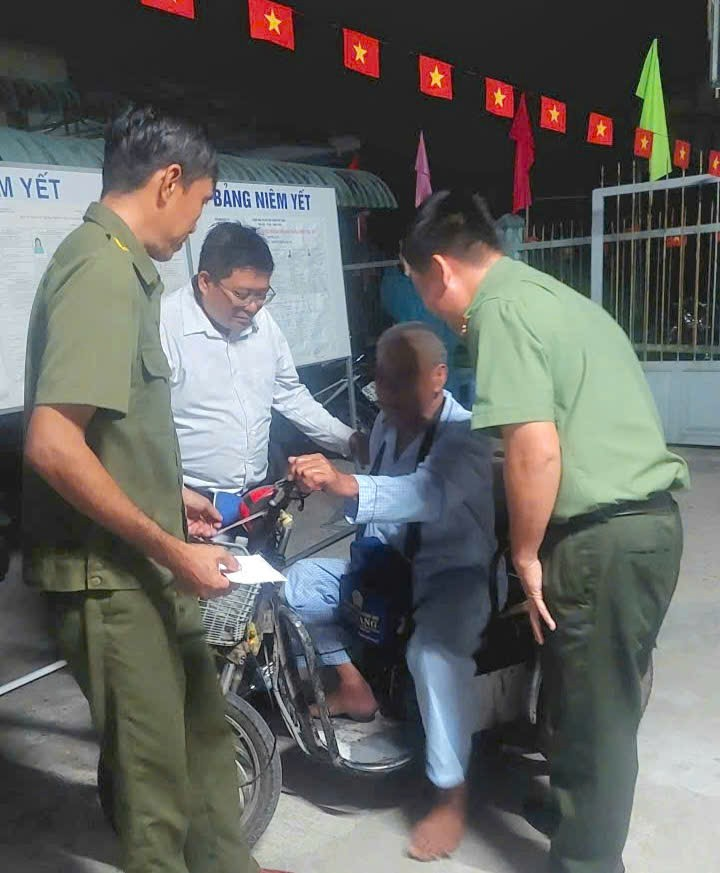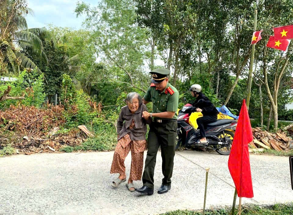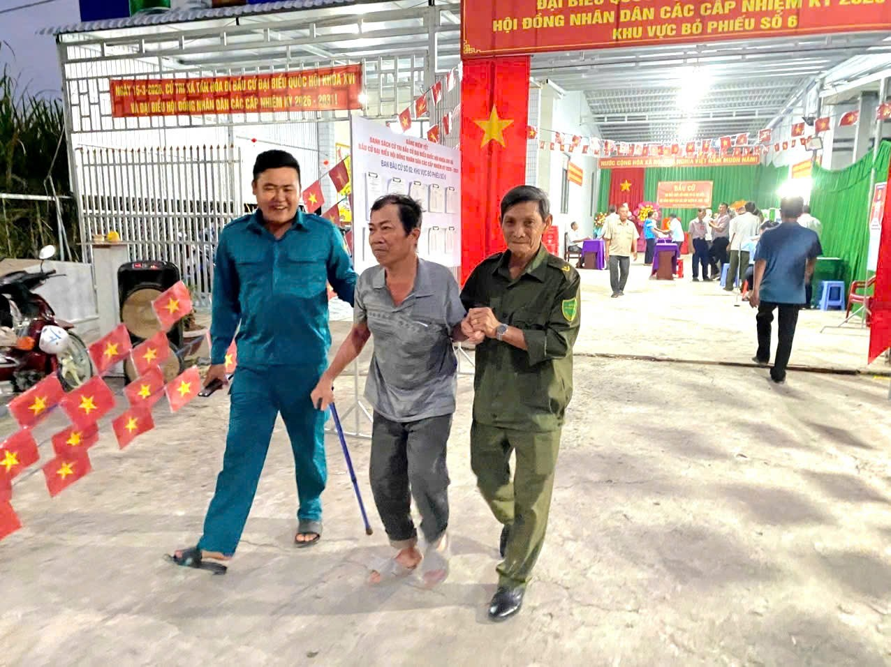Cán bộ chiến sĩ và lực lượng an ninh trật tự cơ sở hỗ trợ người già yếu tham gia bầu cử