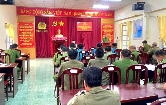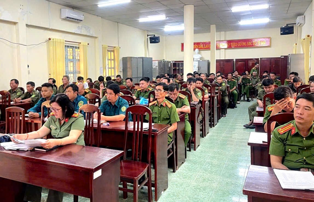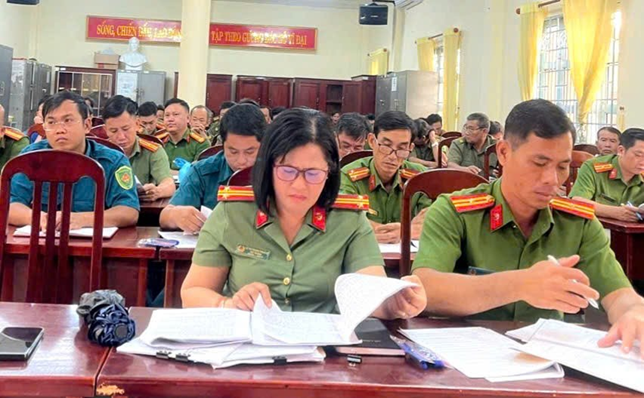 Tham dự hội nghị có Ban Chỉ huy Công an xã, đại diện Ban Chỉ huy Quân sự xã, lực lượng dân quân tự vệ, lực lượng an ninh trật tự cơ sở cùng toàn thể cán bộ, chiến sĩ Công an xã Tân Hòa.