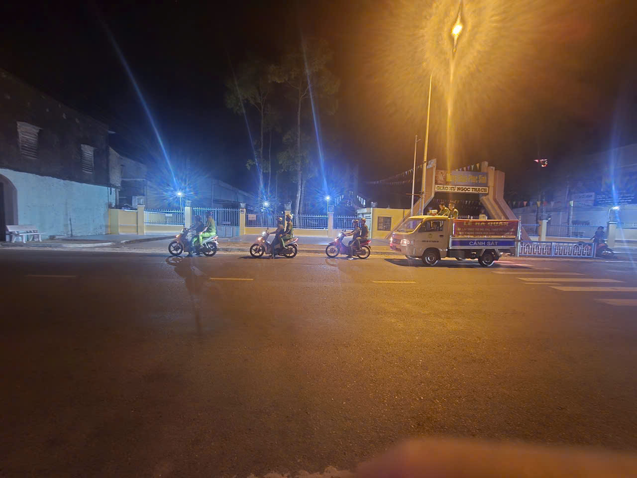 Ảnh: Công an xã Thạnh An tuần tra đêm, bảo đảm an ninh, trật tự tại các giáo xứ, họ đạo trên địa bàn