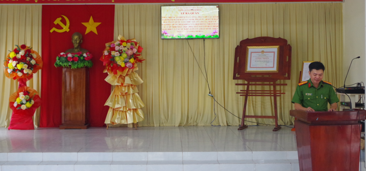 Đồng chí Đỗ Thành Long, Trưởng Công an xã phát biểu tại buổi Lễ ra quân