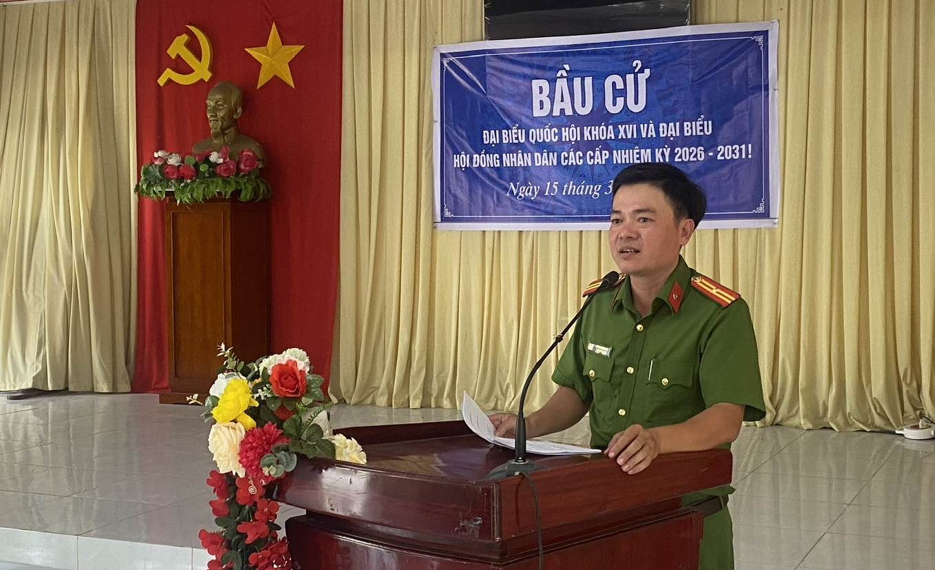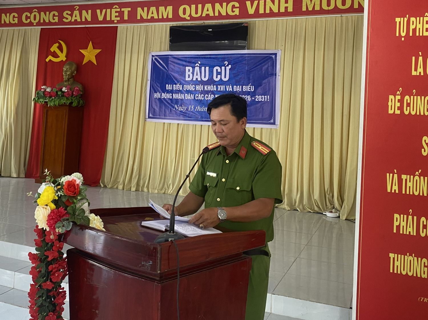 Tại Hội nghị, đồng chí Thiếu tá Dương Văn Hiếu, Phó Trưởng Công an xã thay mặt Công an xã triển khai, quán triệt kế hoạch bảo đảm an ninh, trật tự phục vụ bầu cử đại biểu Quốc hội và đại biểu Hội đồng nhân dân các cấp. Theo đó, lực lượng Công an xã và các đồng chí được tăng cường phân công nhiệm vụ bảo đảm an ninh, trật tự tại các khu vực bỏ phiếu; chủ động nắm chắc tình hình địa bàn, kịp thời phát hiện và giải quyết các vụ việc phát sinh ngay từ cơ sở, không để hình thành điểm nóng, phức tạp. Đồng thời tăng cường tuần tra, kiểm soát, bảo đảm trật tự an toàn giao thông, trật tự công cộng; phối hợp bảo vệ an toàn tại các điểm bầu cử, thực hiện tốt công tác phòng cháy, chữa cháy, sẵn sàng xử lý kịp thời khi có tình huống xảy ra.