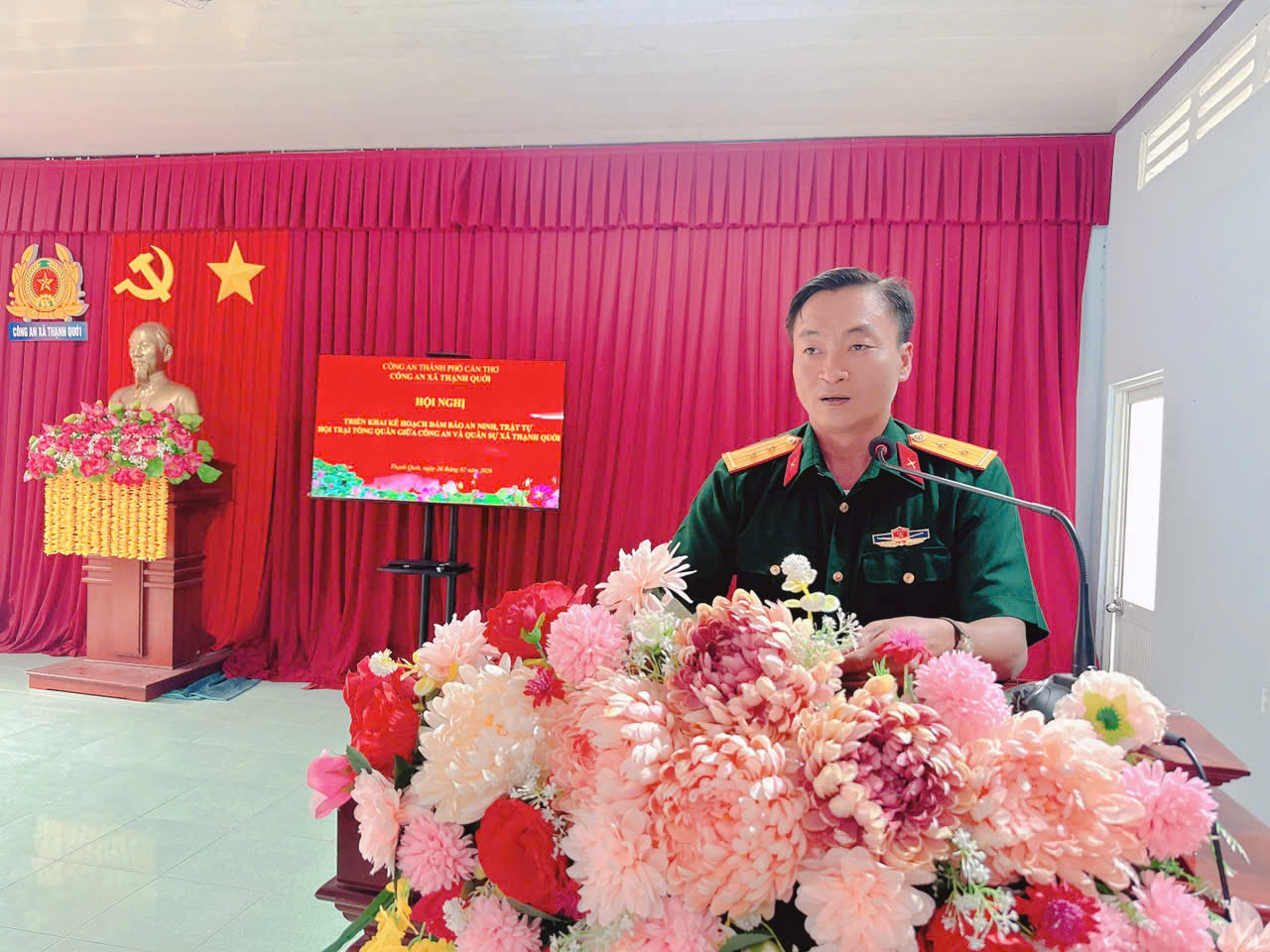 Thực hiện Kế hoạch của Ủy ban nhân dân xã Thạnh Quới về Hội trại tòng quân và Lễ giao nhận quân năm 2026. Chiều ngày 26/02/2026, Công an xã Thạnh Quới long trọng tổ chức Hội nghị triển khai kế hoạch đảm bảo an ninh, trật tự Hội trại tòng quân giữa Công an và Quân sự xã Thạnh Quới. Tham dự có đồng chí Thiếu tá Đặng Hoàng Hưng, Ủy viên Ban Chấp hành Đảng ủy xã, Phó Bí thư Đảng ủy, Phó Trưởng Công an xã - Chủ trì Hội nghị; đồng chí Trung úy Nguyễn Quá Quí, Trợ lý tác huấn Ban Chỉ huy Quân sự xã và cùng các đồng chí trong Ban Chỉ huy Công an xã, cán bộ, chiến sĩ, lực lượng an ninh, trật tự ở cơ sở, chiến sĩ dân quân thường trực Ban Chỉ huy Quân sự xã.