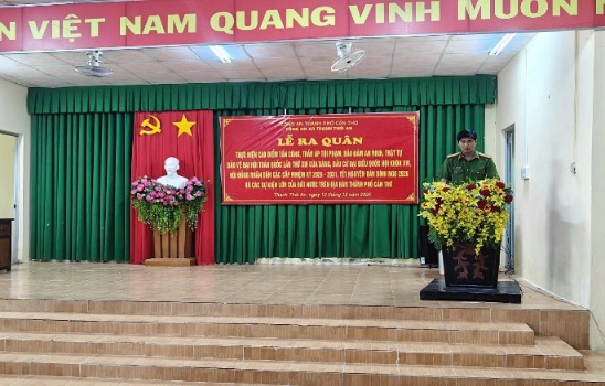 Ngày 12/12/2025 Công an xã Thạnh Thới An tổ chức Lễ ra quân thực hiện cao điểm tấn công, trấn áp tội phạm, bảo đảm an ninh, trật tự phục vụ Đại hội toàn quốc lần thứ XIV của Đảng, bầu cử Quốc hội khóa XVI, Hội đồng nhân dân các cấp nhiệm kỳ 2026 - 2031 và Tết Nguyên đán Bính Ngọ 2026 và các sự kiện lớn của đất nước trên địa bàn thành phố Cần Thơ. Tham dự buổi Lễ có đồng chí Cao Minh Tần, Chủ tịch Ủy ban nhân dân xã; đồng chí Nguyễn Hồ Hồng Hải, Phó Giám thị Trại giam số 2;lãnh đạo các ban, ngành, đoàn thể xã; Ban chỉ huy quân sự xã; toàn thể cán bộ, chiến sĩ Công an xã; Ban nhân dân các ấpvà Lực lượng tham gia bảo vệ an ninh, trật tự ở cơ sở.