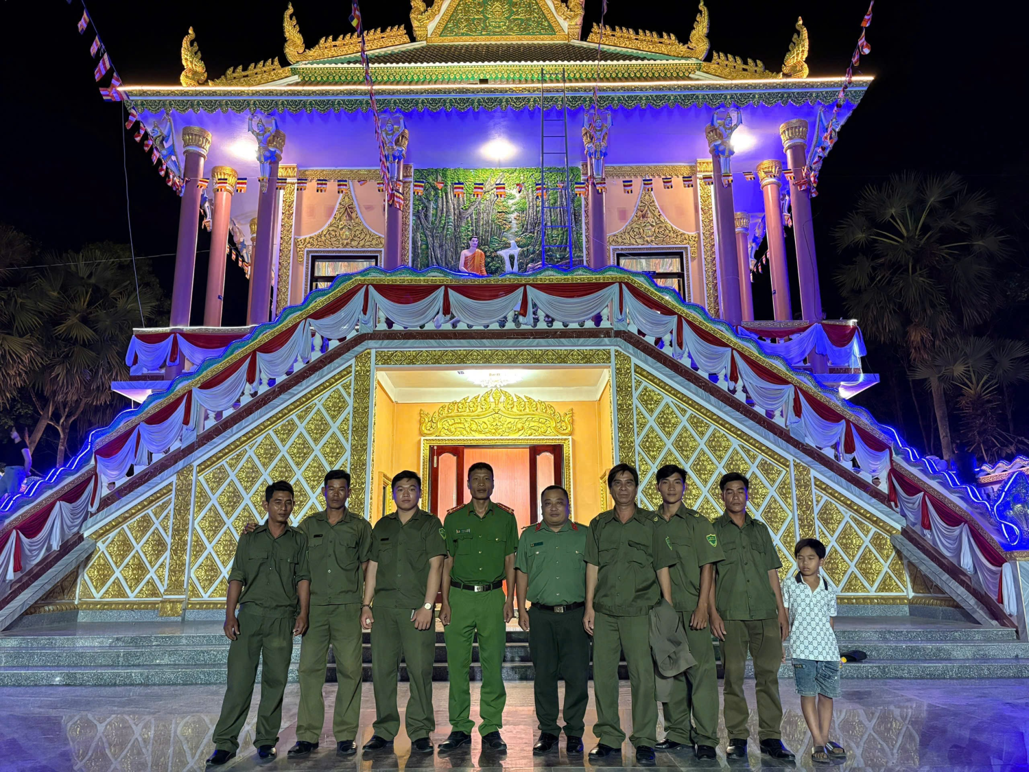 Cùng với đó, lực lượng Công an xã xây dựng kế hoạch phối hợp với các ban, ngành, đoàn thể địa phương tổ chức phân luồng giao thông, hướng dẫn người dân và phương tiện lưu thông an toàn, không để xảy ra ùn tắc, gây mất trật tự công cộng tại khu vực trước, trong và sau khi diễn ra Lễ Kiết giới Sây Ma tại chùa Prếk Om Pu (Tầm Vu). Hưởng ứng Tháng Thanh niên năm 2026 và thiết thực chào mừng kỷ niệm 95 năm Ngày thành lập Đoàn Thanh niên Cộng sản Hồ Chí Minh (26/3/1931 - 26/3/2026) và 70 năm ngày Truyền thống Đoàn thanh niên Bộ Công an (1956 - 2026) gắn với phong trào thi đua “Ba nhất: Kỷ luật nhất - Trung thành nhất - Gần dân nhất” trong Công an nhân dân. Nhằm góp phần đảm bảo an ninh, trật tự trong dịp Lễ Kiết giới Sây Ma sắp diễn ra tại chùa Prếk Om Pu (Tầm Vu), Chi đoàn và Chi hội phụ nữ Công an xã Thạnh Thới An phối hợp tổ chức tuyên truyền về phòng, chống ma tuý; phòng ngừa tội phạm và vi phạm pháp luật cho người dân và phật tử tham dự; nâng cao ý thức cảnh giác, bảo quản tài sản cá nhân; chủ động phòng ngừa các loại tội phạm, nhất là trộm cắp, móc túi tại khu vực đông người. Đồng thời, tuyên truyền người dân khi phát hiện đối tượng nghi vấn, báo ngay cho lực lượng Công an hoặc Ban Tổ chức để xử lý kịp thời. Chấp hành nghiêm các quy định của pháp luật và nội quy của nhà chùa.
