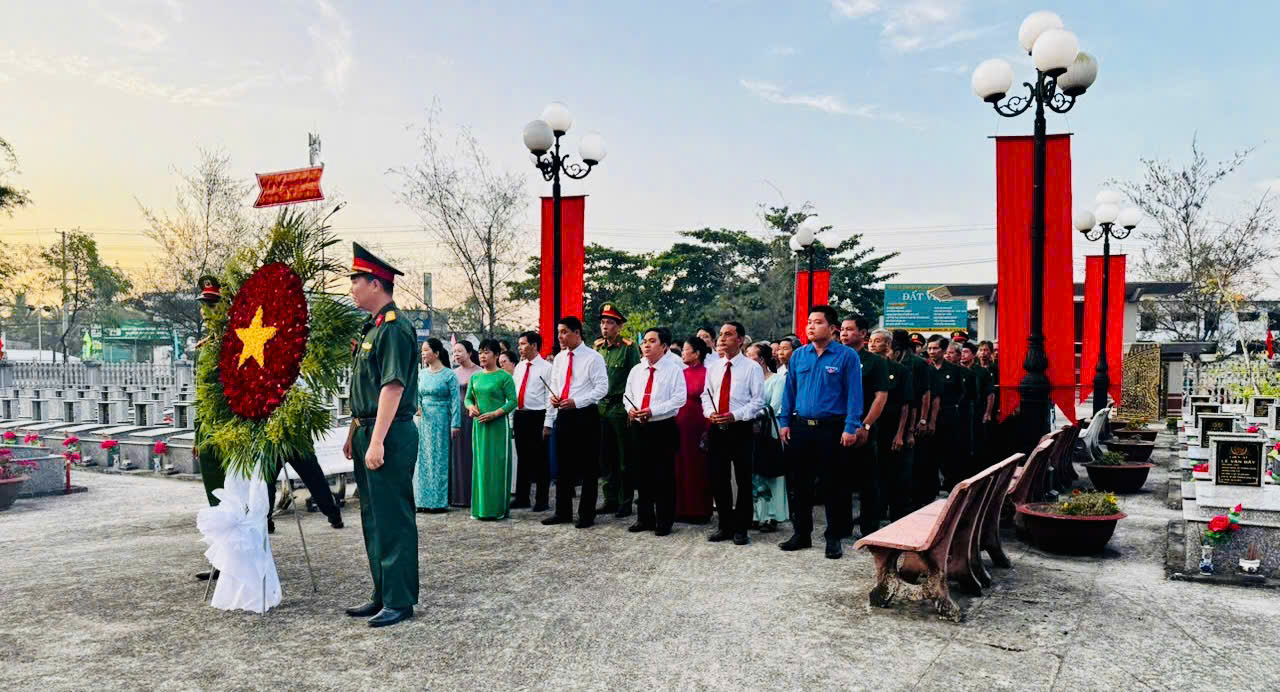 Trong không khí trang nghiêm, thành kính, các đại biểu đã đặt vòng hoa, dâng hương và dành phút mặc niệm tưởng nhớ công lao to lớn của các anh hùng liệt sĩ – những người con ưu tú của dân tộc đã cống hiến trọn đời mình cho sự nghiệp giải phóng dân tộc, thống nhất đất nước.