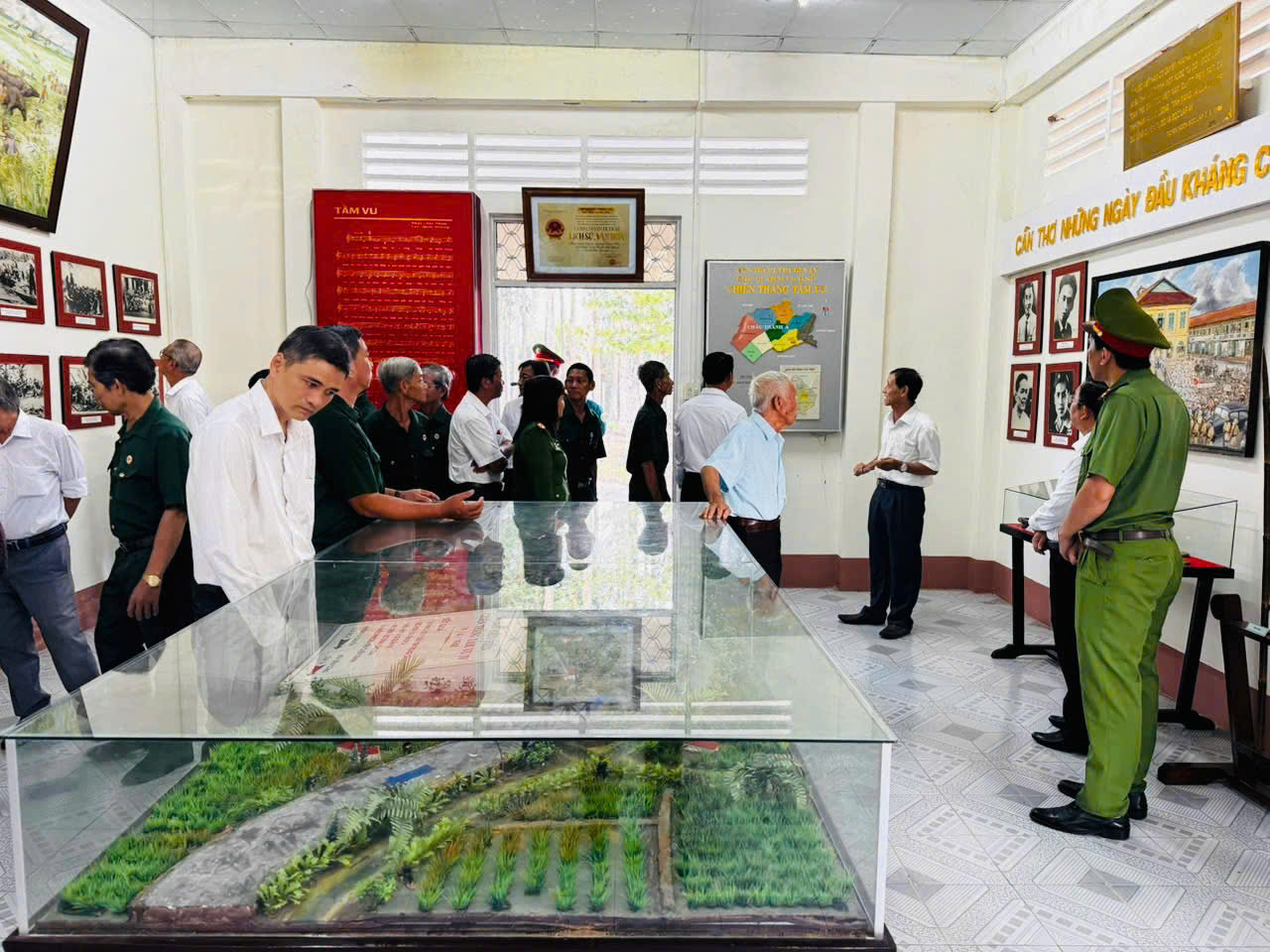 Lãnh đạo cùng Đoàn đại biểu xã Thạnh ôn lại lịch sử các cuộc Chiến Thắng Tầm Vu tại nhà tưởng niệm Khu di tích lịch sử Tầm Vu