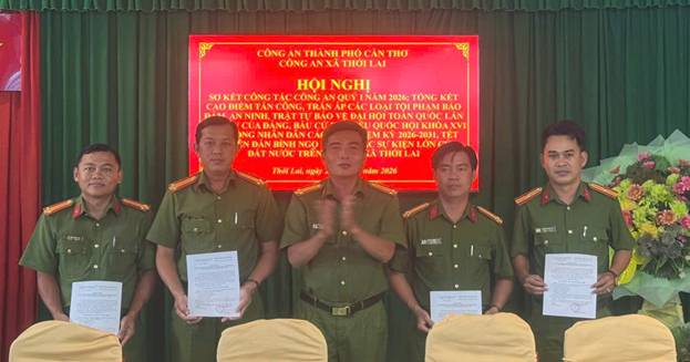 Chiều 28/4/2026, tại hội trường Công an xã Thới Lai, Công an xã tổ chức Hội nghị sơ kết công tác Công an quý I năm 2026; đồng thời tổng kết đợt cao điểm tấn công, trấn áp các loại tội phạm, bảo đảm an ninh, trật tự (ANTT) phục vụ Đại hội đại biểu toàn quốc lần thứ XIV của Đảng, bầu cử đại biểu Quốc hội khóa XVI và Hội đồng nhân dân các cấp nhiệm kỳ 2026–2031, Tết Nguyên đán Bính Ngọ 2026 cùng các sự kiện lớn của đất nước trên địa bàn. Đồng chí Trung tá Trương Hồng Tiến, Trưởng Công an xã chủ trì Hội nghị.