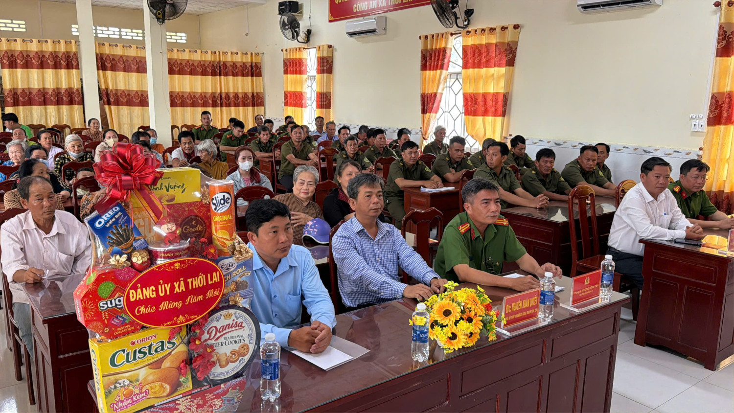 Đến dự chương trình có đại diện Đảng ủy, Hộiđồng nhân dân, Ủyban nhân dân, Ủy ban Mặttrận Tổ quốc Việt Nam xã Thới Lai; cùng tập thể cán bộ, chiến sĩ Công an xã, lực lượng an ninh, trật tự ở cơ sở và đông đảo Nhân dân. Sự hiện diện của hơn 100 đại biểu và bà con đã tạo nên không khí ấm áp, đoàn kết trong những ngày giáp Tết.