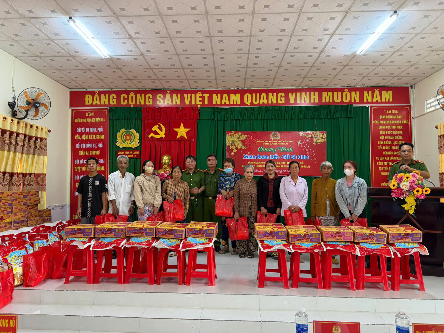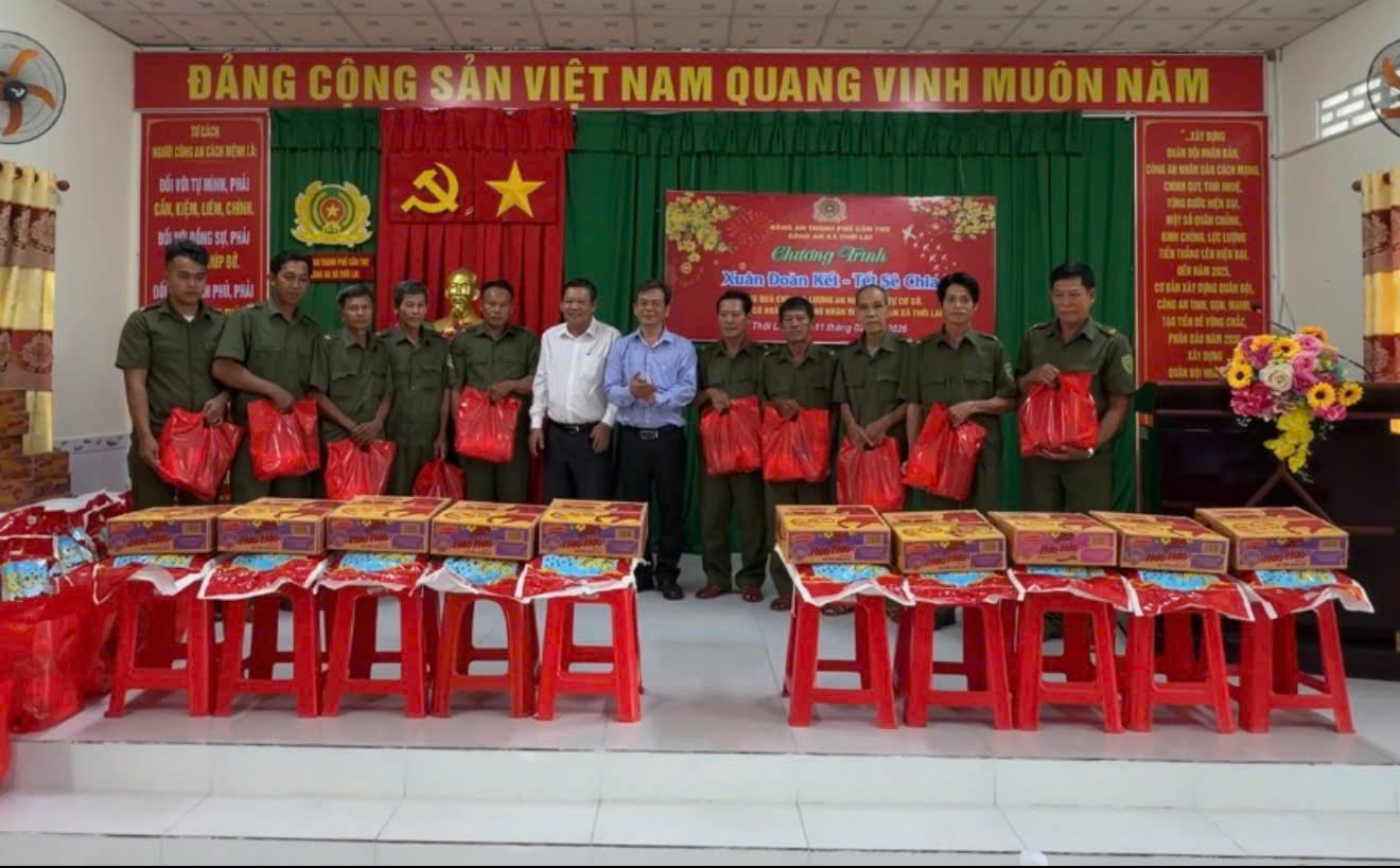 Nhân dịp Tết Nguyên đán Bính Ngọ năm 2026, Công an xã Thới Lai tổ chức chương trình “Xuân đoàn kết – Tết sẻ chia”, trao tặng quà cho cán bộ, chiến sĩ Công an xã, lực lượng an ninh, trật tự ở cơ sở và các hộ gia đình có hoàn cảnh khó khăn trên địa bàn. Chương trình đã trao 70 phần quà với tổng kinh phí hơn 35 triệu đồng, thể hiện sự quan tâm, sẻ chia và trách nhiệm vì cộng đồng của đơn vị.