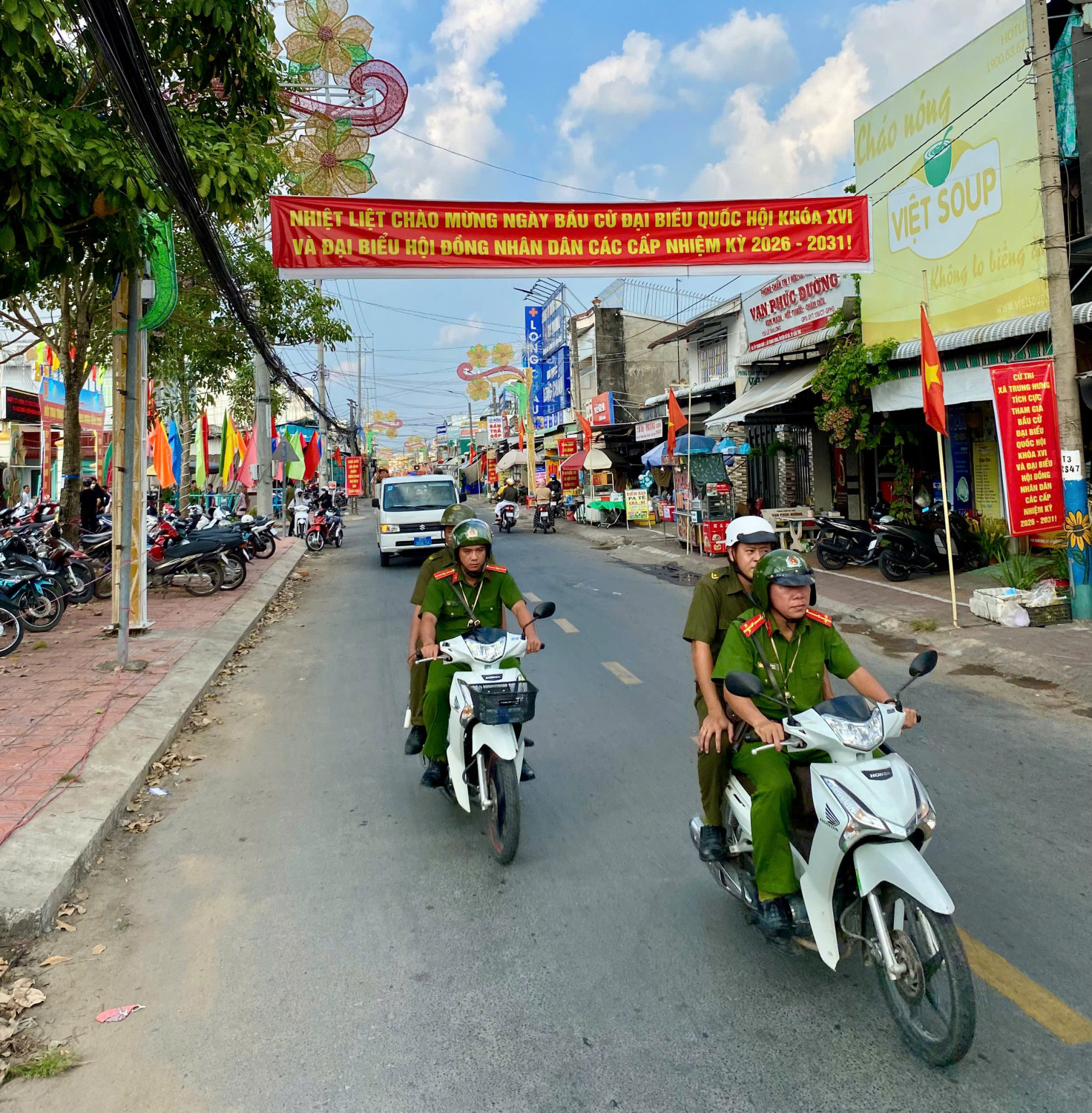 Bên cạnh việc tuần tra, kiểm soát, Công an xã cũng tăng cường công tác kiểm tra hành chính tại các cơ sở kinh doanh dịch vụ, nhà trọ, địa điểm tập trung đông người. Hoạt động này nhằm kịp thời phát hiện các trường hợp vi phạm quy định về cư trú, tàng trữ công cụ hỗ trợ trái phép hoặc các hành vi có dấu hiệu gây mất an ninh trật tự, từ đó chủ động xử lý, không để phát sinh điểm nóng trên địa bàn. Phối hợp chặt chẽ với các ban, ngành, đoàn thể và lực lượng tham gia bảo vệ an ninh trật tự ở cơ sở để nắm chắc tình hình, chủ động phòng ngừa, không để xảy ra các vụ việc phức tạp ảnh hưởng đến công tác bầu cử. Đặc biệt, cán bộ, chiến sĩ Công an xã tích cực hưởng ứng phong trào thi đua Ba nhất: “Kỷ luật nhất - Trung thành nhất - Gần dân nhất”, qua đó nêu cao tinh thần trách nhiệm, chấp hành nghiêm điều lệnh, lễ tiết, tác phong công tác; tận tụy trong thực hiện nhiệm vụ và luôn gần gũi, lắng nghe ý kiến Nhân dân. Phong trào thi đua đã góp phần nâng cao hiệu quả công tác bảo đảm an ninh trật tự, củng cố niềm tin của Nhân dân đối với lực lượng Công an cơ sở. Song song đó, công tác phòng ngừa, đấu tranh với các loại tội phạm, tệ nạn xã hội; quản lý cư trú; kiểm tra công tác phòng cháy, chữa cháy tại các địa điểm dự kiến tổ chức bầu cử cũng được triển khai đồng bộ, góp phần chủ động phòng ngừa, không để xảy ra các tình huống phức tạp.