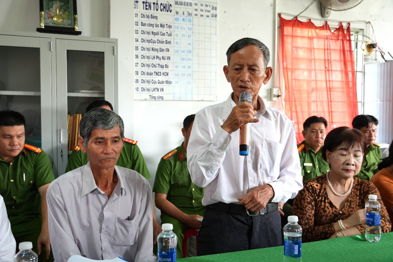 Ảnh: Trung tá Phạm Việt Bắc, Trưởng Công an xã Trường Long Tây phát biểu tại Lễ ra mắt mô hình