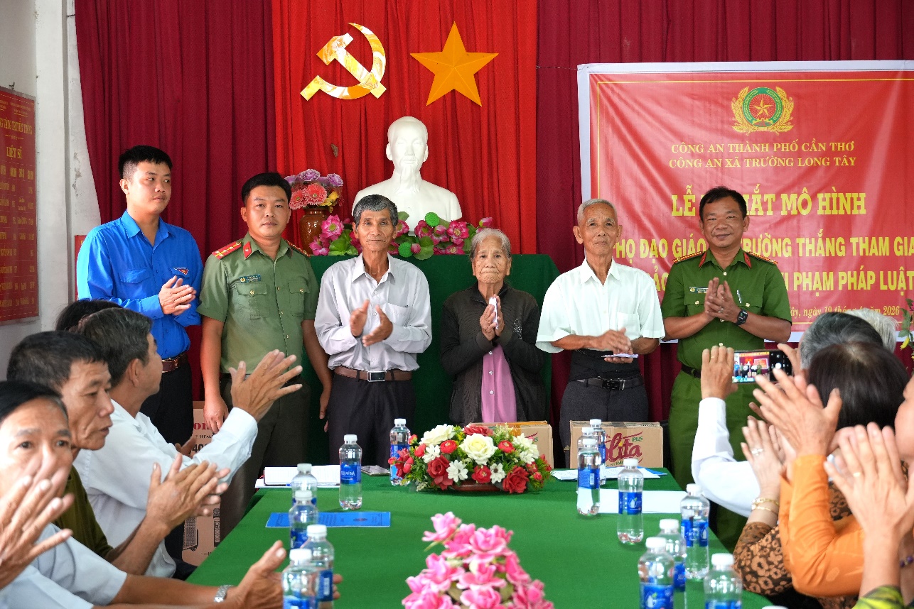 Dịp này, Công an xã Trường Long Tây đã ra mắt Ban Chỉ đạo mô hình và tặng quà cho hai bà con giáo dân của Họ đạo Giáo xứ Trường Thắng