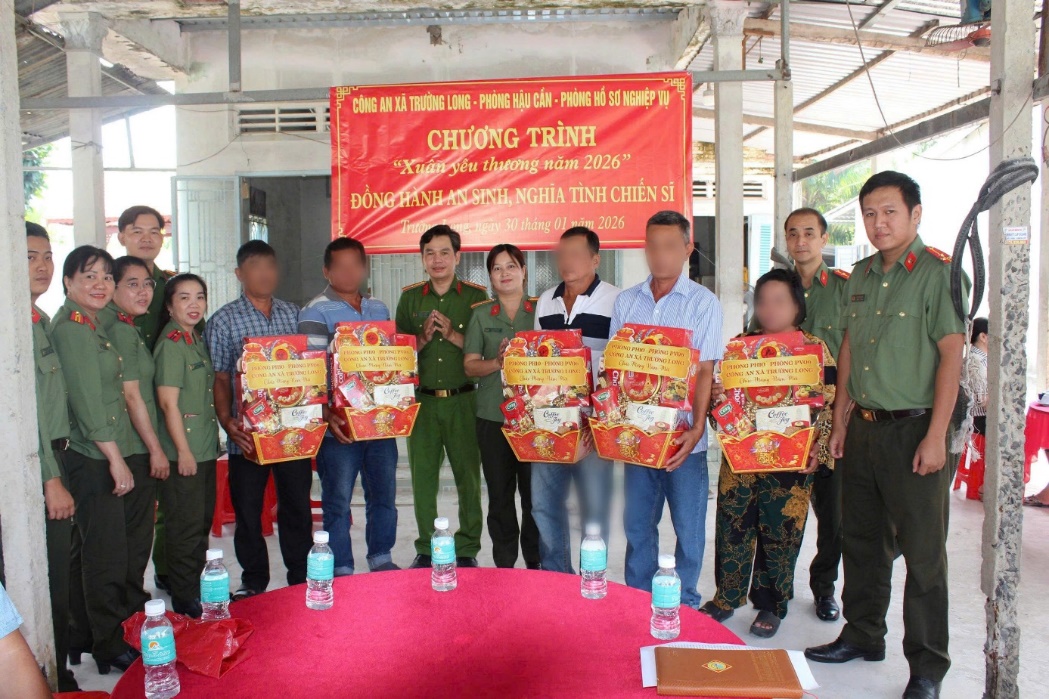 Trước đó, nằm trong khuôn khổ các hoạt động chăm lo Tết, ngày 30/01/2026, Công an xã Trường Long cũng đã phối hợp với Phòng Hậu cần và Phòng Hồ sơ nghiệp vụ tổ chức Chương trình “Xuân yêu thương năm 2026” - Đồng hành an sinh, nghĩa tình chiến sĩ.