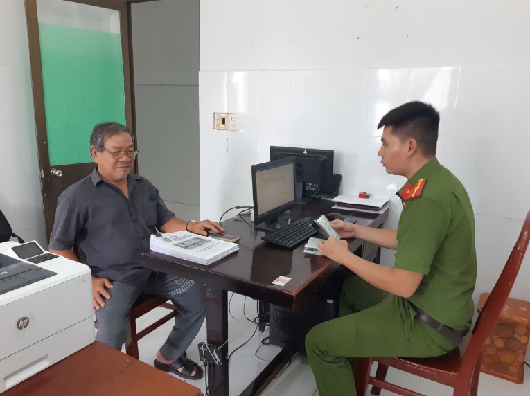 Cán bộ công an xã Trường Thành hướng dẫn công dân khai báo lưu trú cho người nước ngoài