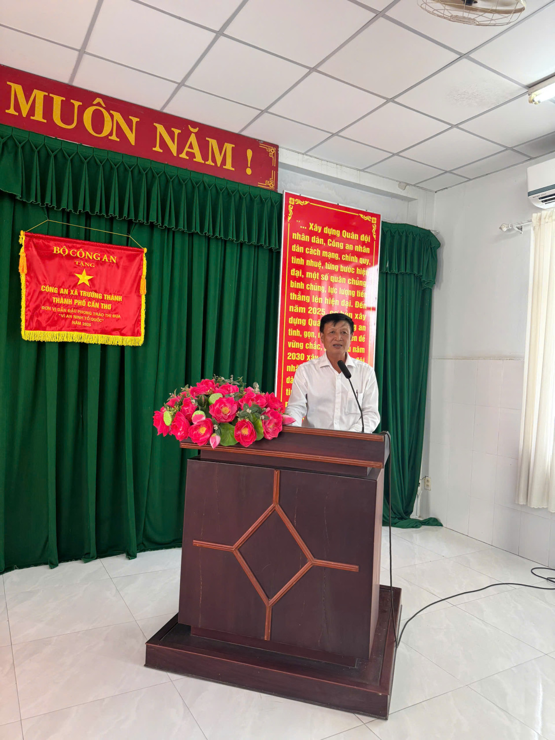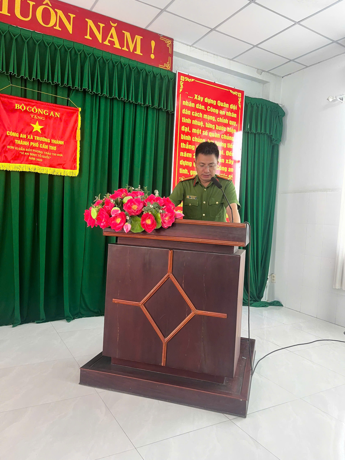 Chiều ngày 23/4/2026, tại Hội trường Công an xã Trường Thành, Hội nghị đã được tổ chức với sự tham dự của đồng chí Nguyễn Văn Bỉ, Chủ tịch Uỷ ban nhân dân xã, đại diện Lãnh đạo Phòng Cảnh sát Hình sự Công an thành phố, các ban, ngành, đoàn thể xã cùng toàn thể cán bộ, chiến sĩ Công an xã và lực lượng tham gia bảo vệ an ninh, trật tự ở cơ sở.