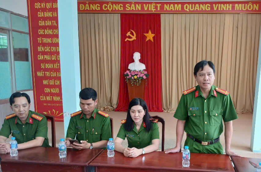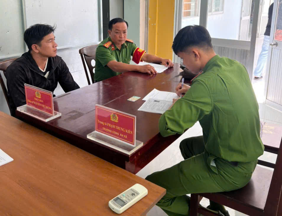 Công an xã tiếp nhận đối tượng Dương Minh Cảnh ra đầu thú tại trụ sở làm việc