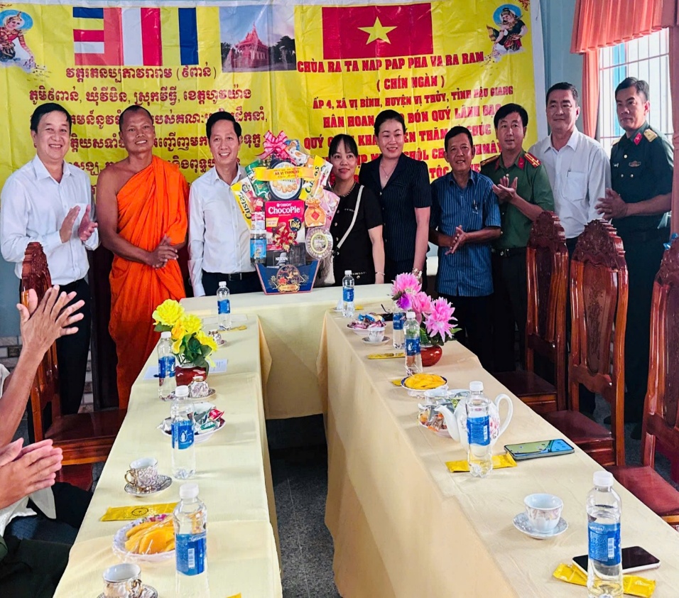 Nhân dịp Tết cổ truyền Chôl Chnăm Thmây năm 2026 của đồng bào Khmer, Công an xã Vị Thanh 1, thành phố Cần Thơ cùng đoàn công tác của Đảng ủy - Hội đồng nhân dân - Ủy ban nhân dân - Ủy ban Mặt trận tổ quốc Việt Nam xã Vị Thanh 1 do ông Nguyễn Văn Diên – Bí thư Đảng ủy, Chủ tịch HĐND xã làm Trưởng đoàn đã đến thăm, tặng quà, chúc Tết tại chùa Ratana Paphia Vararam trên địa bàn.