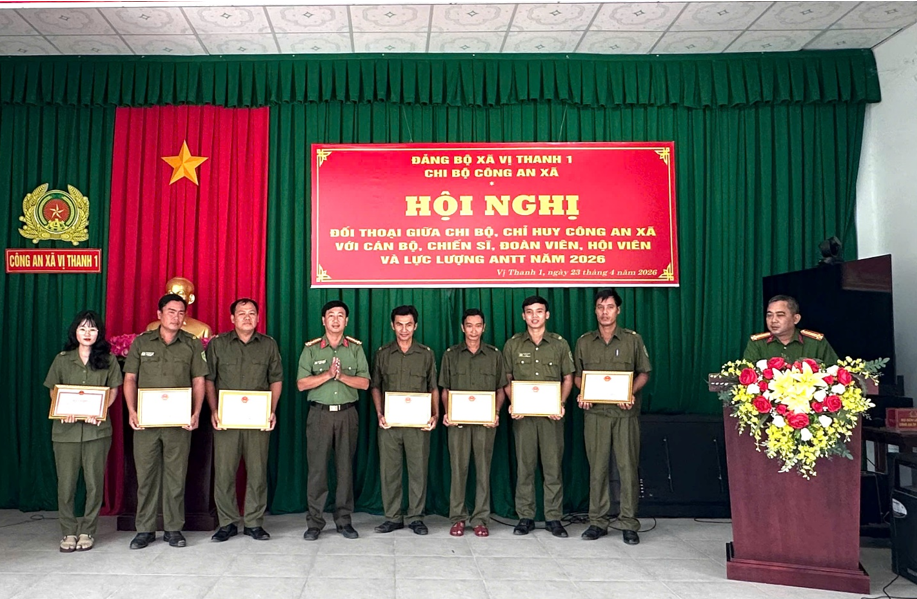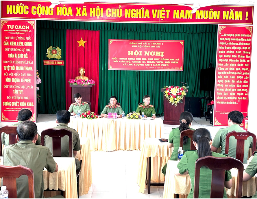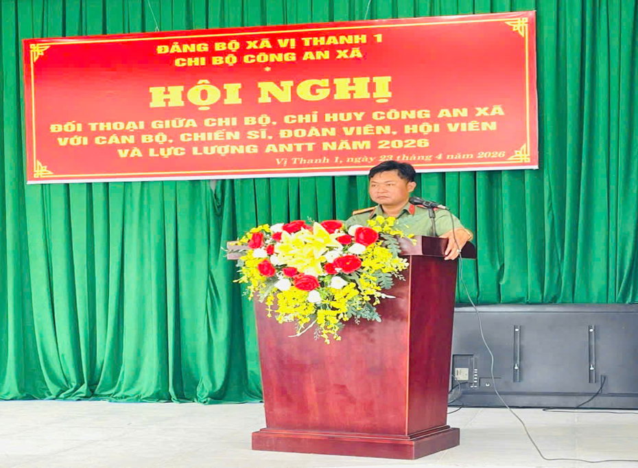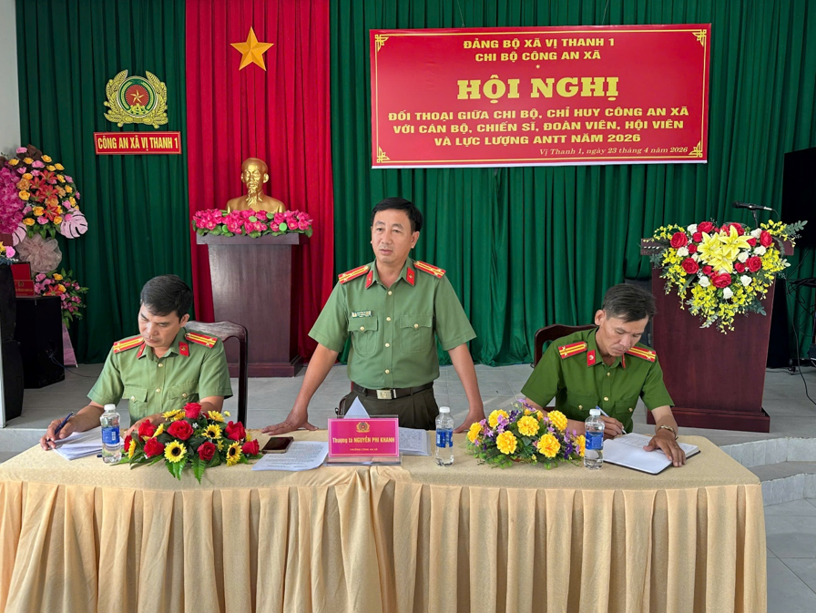 Nhằm tăng cường mối quan hệ phối hợp, kịp thời nắm bắt tâm tư, nguyện vọng và tháo gỡ những khó khăn, vướng mắc trong quá trình thực hiện nhiệm vụ, sáng ngày 23/4/2026, Công an xã Vị Thanh 1 đã tổ chức Hội nghị gặp gỡ, đối thoại giữa chính quyền địa phương và lực lượng tham gia bảo vệ an ninh, trật tự ở cơ sở.