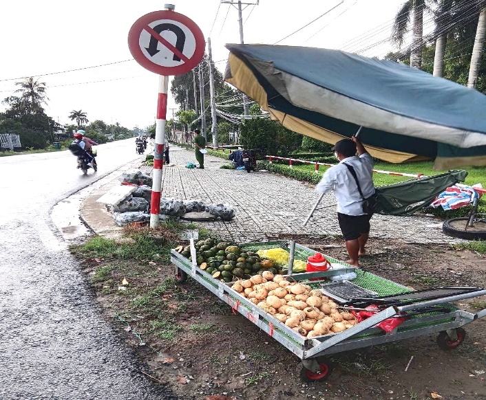 Hình ảnh một số người dân lấn chiếm lòng đường, lề đường để buôn bán nhỏ lẻ tự phát trên địa bàn xã.