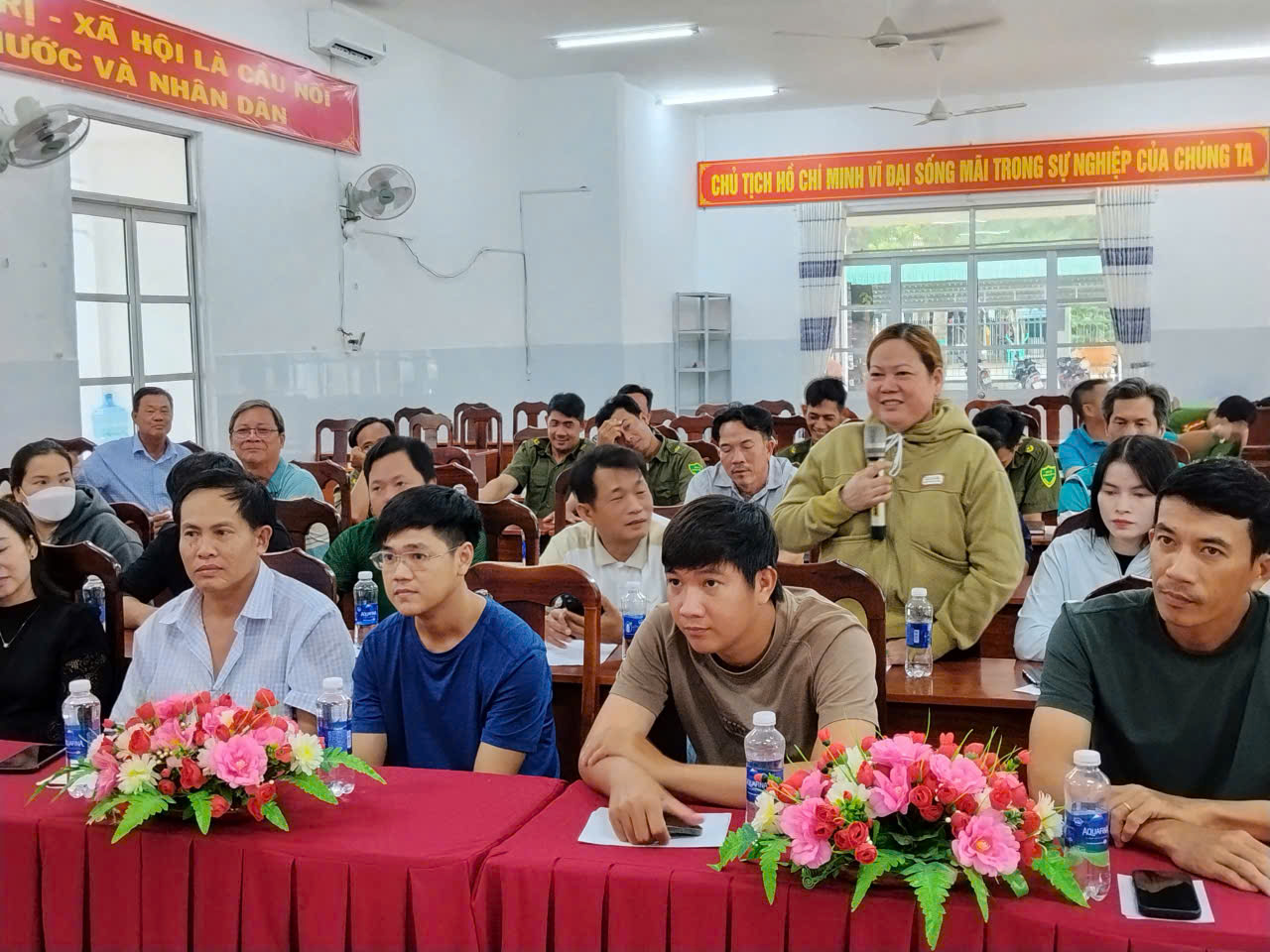Đại diện chỉ huy Công an xã Vĩnh Hải giải đáp thắc mắc của doanh nghiệp