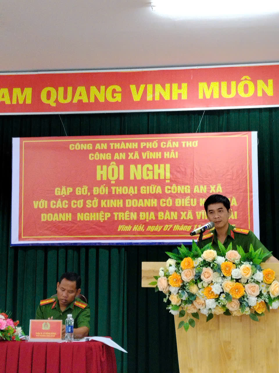 Phát biểu tại Hội nghị, Thiếu tá Đặng Hoàng Phúc, Trưởng Công an xã xã Vĩnh Hải nhấn mạnh, buổi gặp gỡ, đối thoại với các cơ sở kinh doanh có điều kiện về an ninh, trật tự và doanh nghiệp trên địa bàn là một hình thức sinh hoạt chính trị có ý nghĩa quan trọng của lực lượng Công an xã Vĩnh Hải. Thông qua Hội nghị, các doanh nghiệp đóng góp một số ý kiến về công tác tiếp nhận và giải quyết thủ tục hành chính. Những góp ý này góp phần củng cố, tăng cường mối quan hệ giữa lực lượng Công an nhân dân với các doanh nghiệp, đồng thời xây dựng lực lượng Công an nhân dân trong sạch, vững mạnh và toàn diện./.