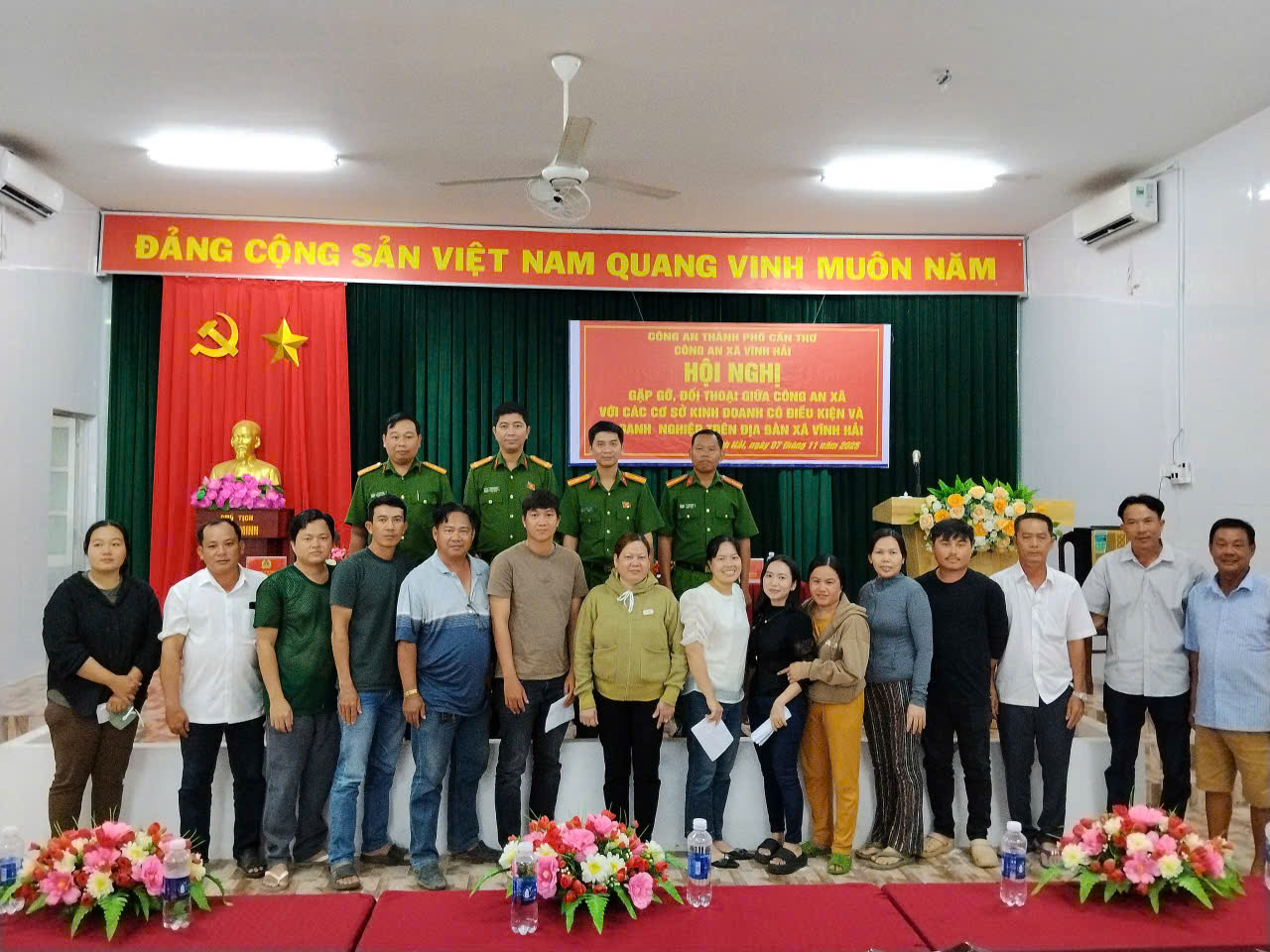 Ngày 07/11/2025, tại Nhà Văn hóa xã, Công an xã Vĩnh Hải tổ chức Hội nghị gặp gỡ, đối thoại giữa lực lượng Công an xã với các cơ sở kinh doanh có điều kiện về an ninh, trật tự và doanh nghiệp trên địa bàn. Tham dự Hội nghị có chỉ huy, cán bộ, chiến sĩ Công an xã cùng hơn 30 đại diện các cơ sở kinh doanh và doanh nghiệp.