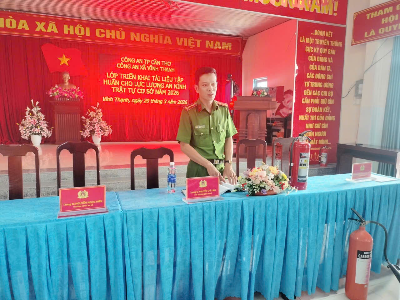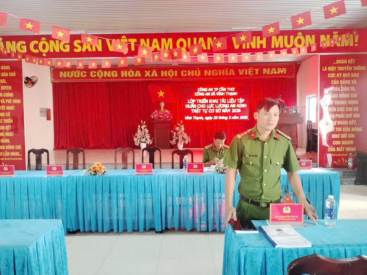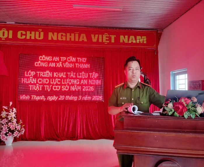 Ngày 20/3/2026, Công an xã Vĩnh Thạnh tổ chức lớp tập huấn, bồi dưỡng kiến thức chính trị, pháp luật và nghiệp vụ cho Lực lượng tham gia bảo vệ an ninh, trật tự ở cơ sở năm 2026.