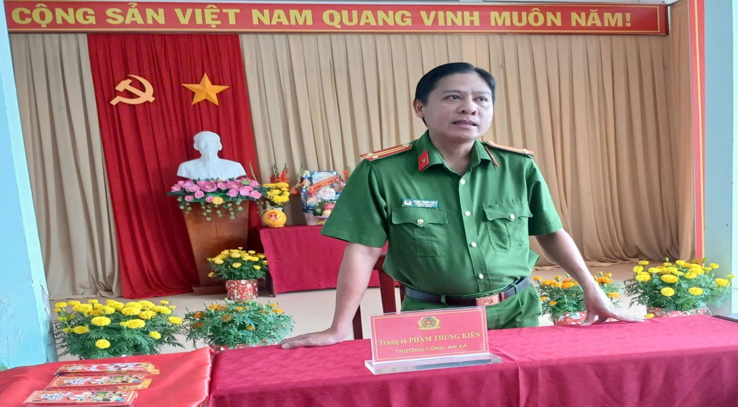 Đồng chí Trung tá Phạm Trung Kiên, Ủy viên Ban Thường vụ Đảng ủy, Trưởng Công an xã gửi lời chúc Tết, thăm hỏi, động viên đến lực lượng bảo vệ an ninh, trật tự ở cơ sở