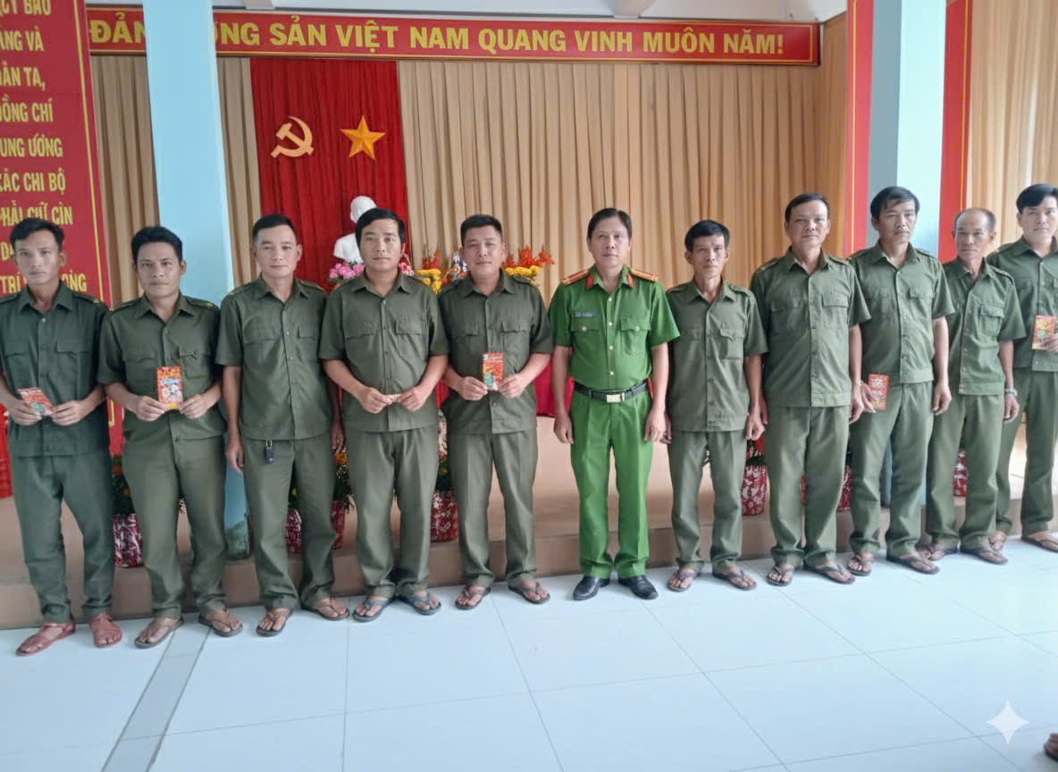 Đồng chí Trưởng Công an xã tặng quà cho các đồng chí lực lượng bảo vệ an ninh, trật tự ở cơ sở