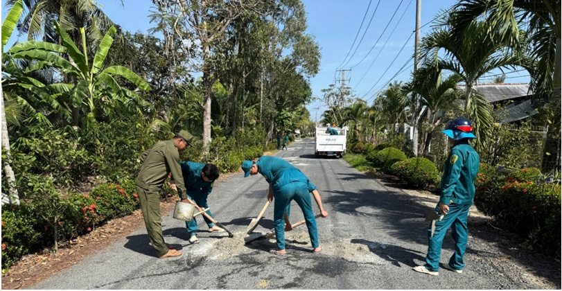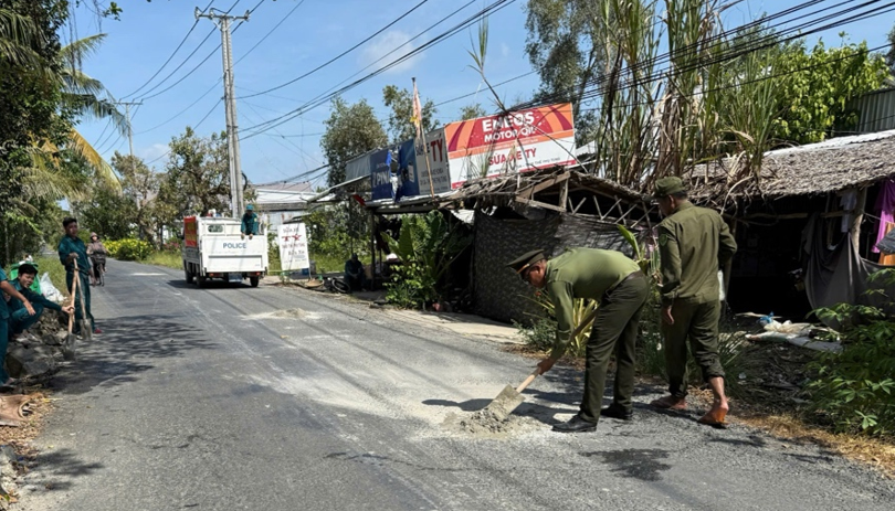 Ngày 20/12/2025, Công an xã đã phối hợp với các ngành trên địa bàn tiến hành dặm vá lộ trên tuyến 930B, nơi có biểu hiện xuống cấp, hư hỏng, xuất hiện nhiều ổ gà, tiềm ẩn nguy cơ gây mất an toàn cho người tham gia giao thông. Qua đó, đã tiến hành dặm vá được hơn 5 km lộ, góp phần bảo đảm an toàn cho người tham gia giao thông trên địa bàn.